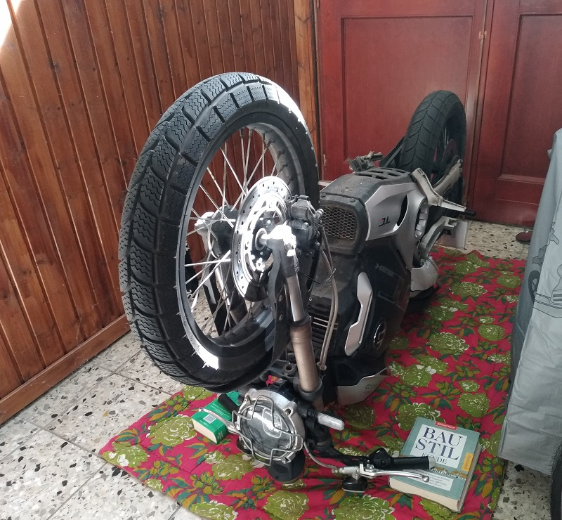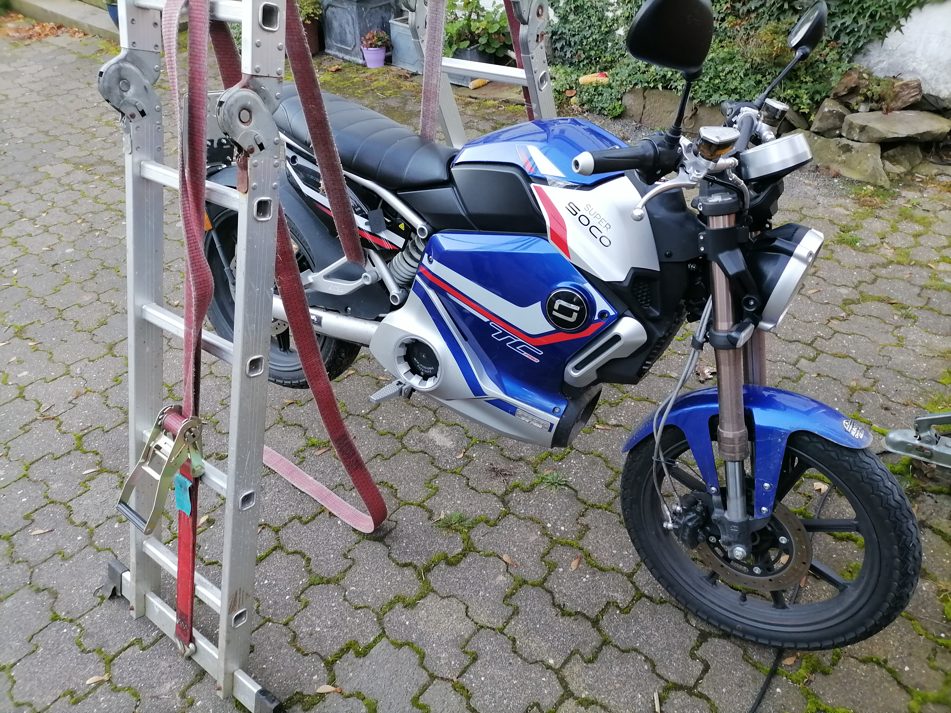 Nee im Ernst, unter das Plastezeug in der Mitte unter der Soco hab ich mich auch noch nicht getraut, einen Motorrad-Wagenheber anzusetzen.