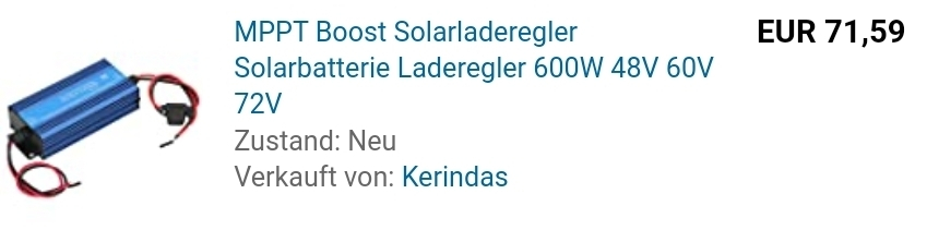 Ich kann dann mittels XT90 Stecker auf einen Step Up MPPT Solarregler umbauen. Erste Versuche mit dem 7210A waren mehr als ernüchternd. Habe jetzt einen 600W Regler bestellt.