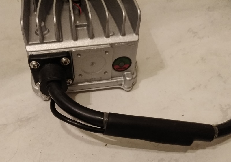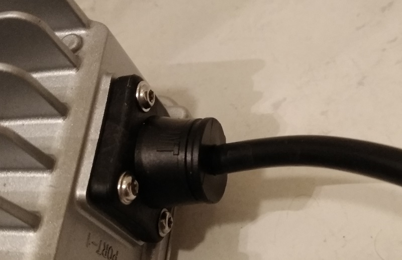 Die Kabeleinführungen sind alle ordentlich vergossen. Ein echter Knickschutz ist leider nicht vorhanden, das Kabel knickt nach dem Kabelauslass einfach ab, der Kunststoffschniepel ist nicht flexibel sondern festes Material. Der Anschluss des Ladekabels wirkt durch den Schrumpfschlauch irgendwie improvisiert. Das Netzkabel ist leider nicht abnehmbar.