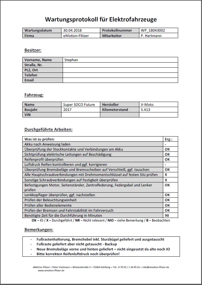 Im Anhang das "bearbeitete" Wartungsprotokoll.