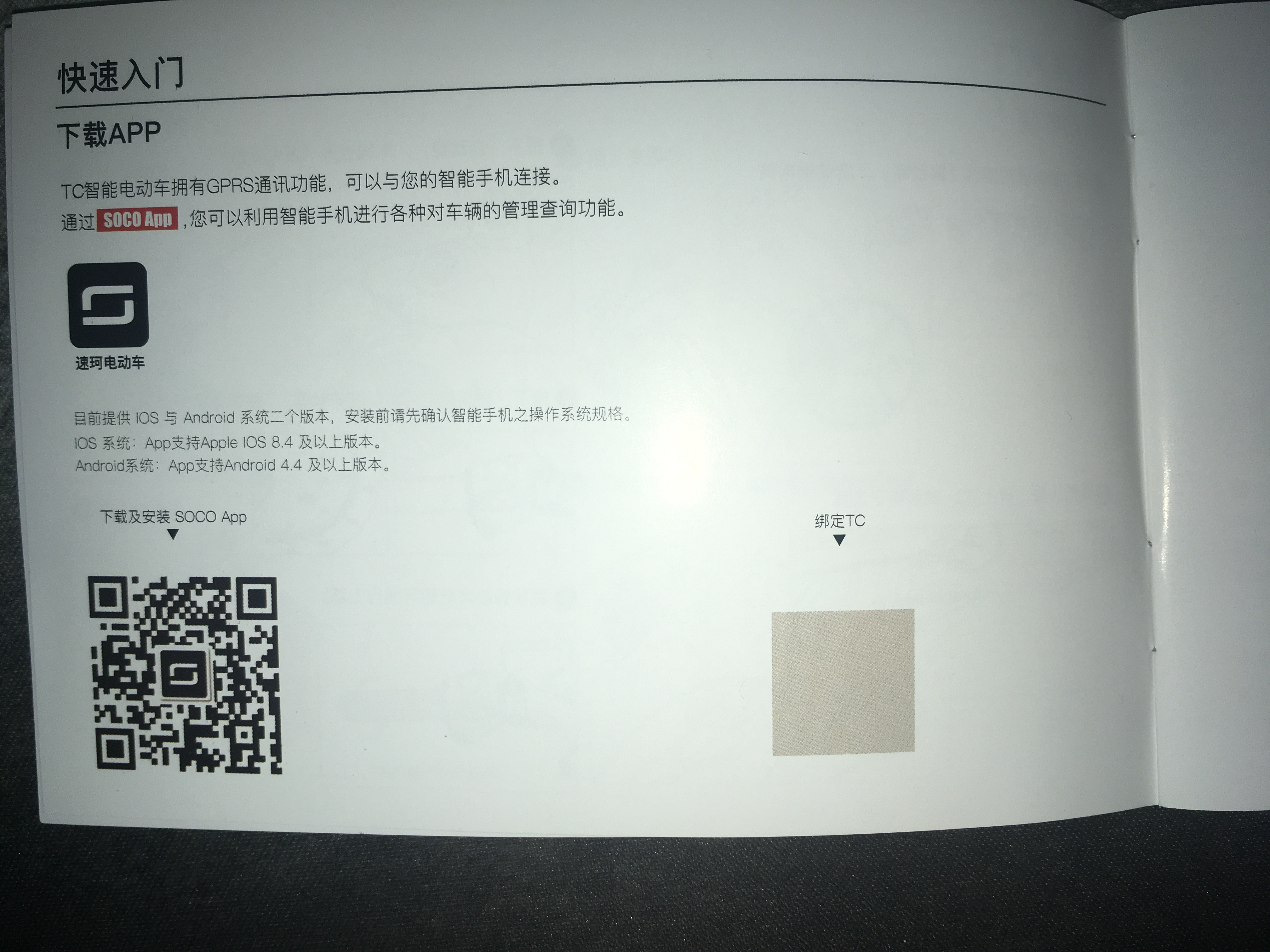 Ich habe auch nur die braune Schachtel ohne QR Code. Die QR Codes im Handbuch sind nur Links zum downloaden der APP. Konnte meine Super SOCO TC leider auch nicht registrieren.