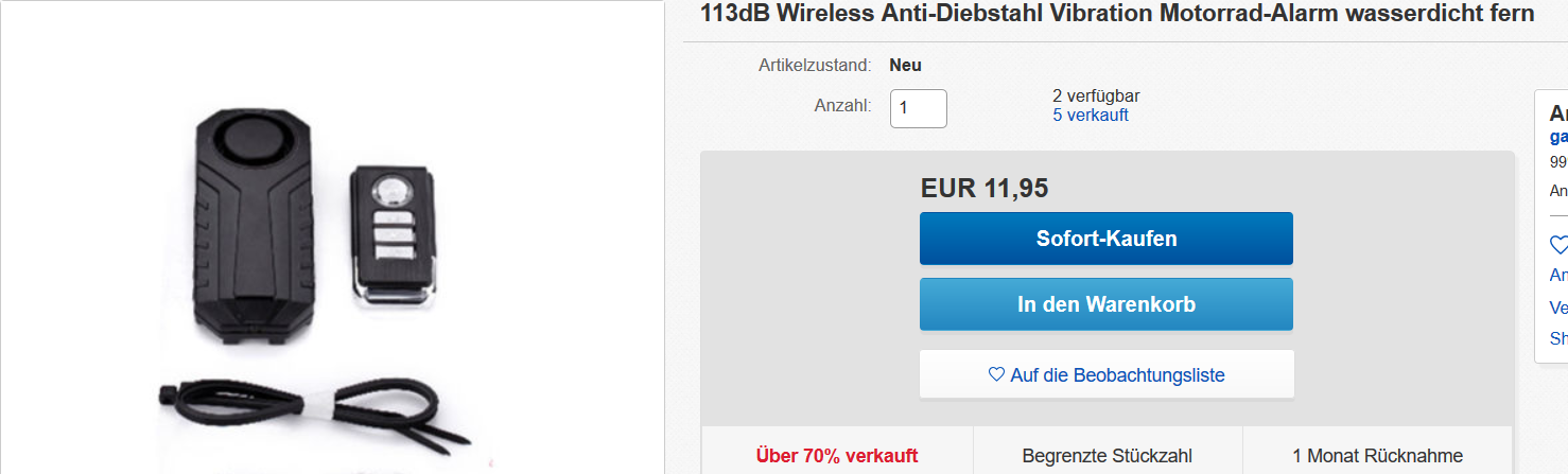 Hallo Leute,mich würde mal interessieren wie Ihr eure Soco`s absichert,beim Parken wenn Ihr unterwegs seit oder zu Hause vor der Tür oder in der Garage (Schuppen usw.),was macht ihr wenn der Akku nicht in der Soco ist (keine Alarmanlage),Habt Ihr ein dickes Kettenschloß dabei,oder nutzt Ihr nur das Lenkradschloß.Ich habe mir jetzt mal dieses Teil bestellt :https://www.ebay.de/itm/113dB-Wireless- ... 0009.m1982