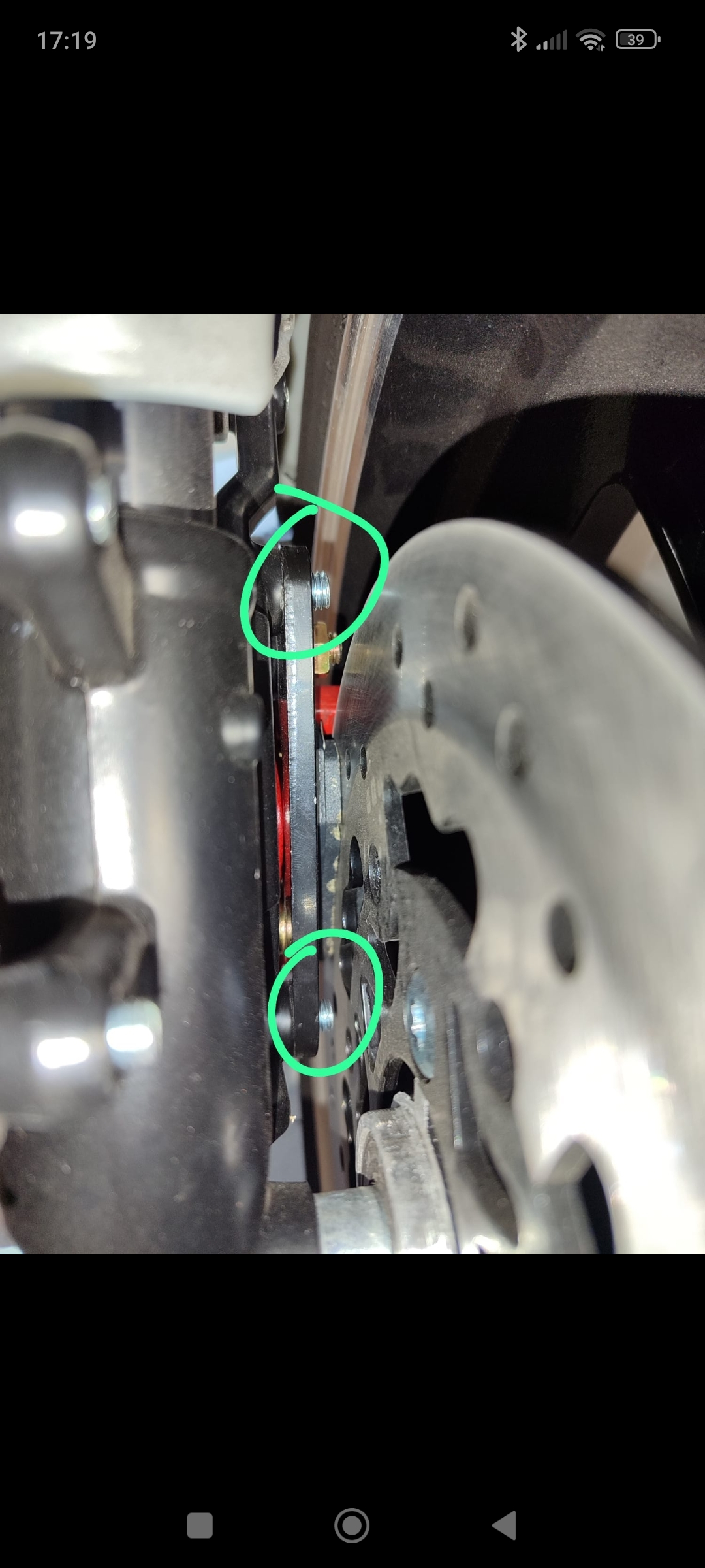 Hab an den markierten Stellen an der schraube vorher jeweils 4 Ringe reingemacht und danach festgezogen.