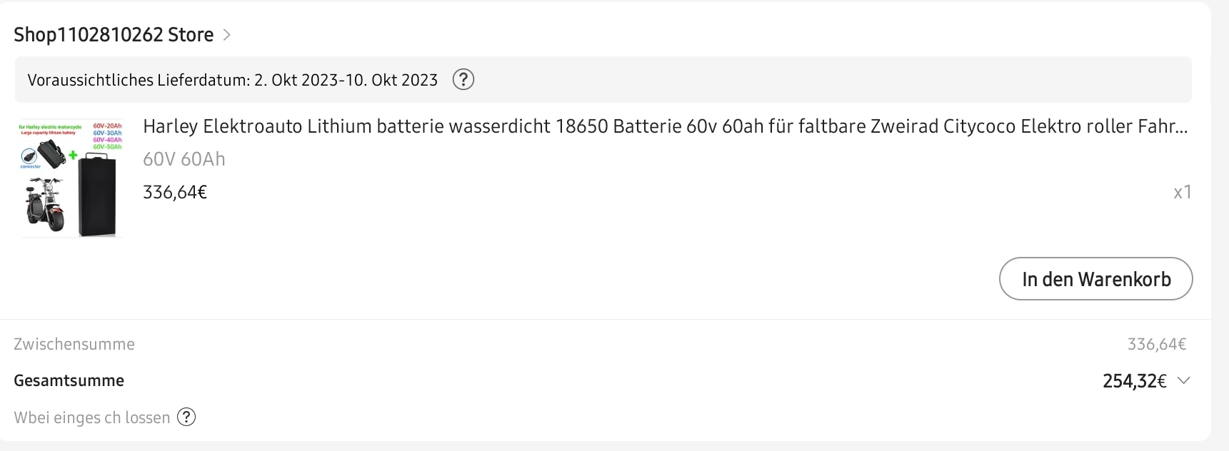 Nun, 364,- Euro für einen 60V * 60Ah = 3,6kWh erscheint mir zu günstig. Vielleicht taugt der Akku nichts? Für ebike Akkus 72V 50Ah = 3,6kWh mit 21700 Littokala Zellen habe ich Anfang des Jahres 500,- Euro/Stück bezahlt. Bisher bin ich mit den Littokala ebike Akkus zufrieden - teilweise fahre ich mit 4Stück parallel, meist aber nur mit 2 Stück parallel
