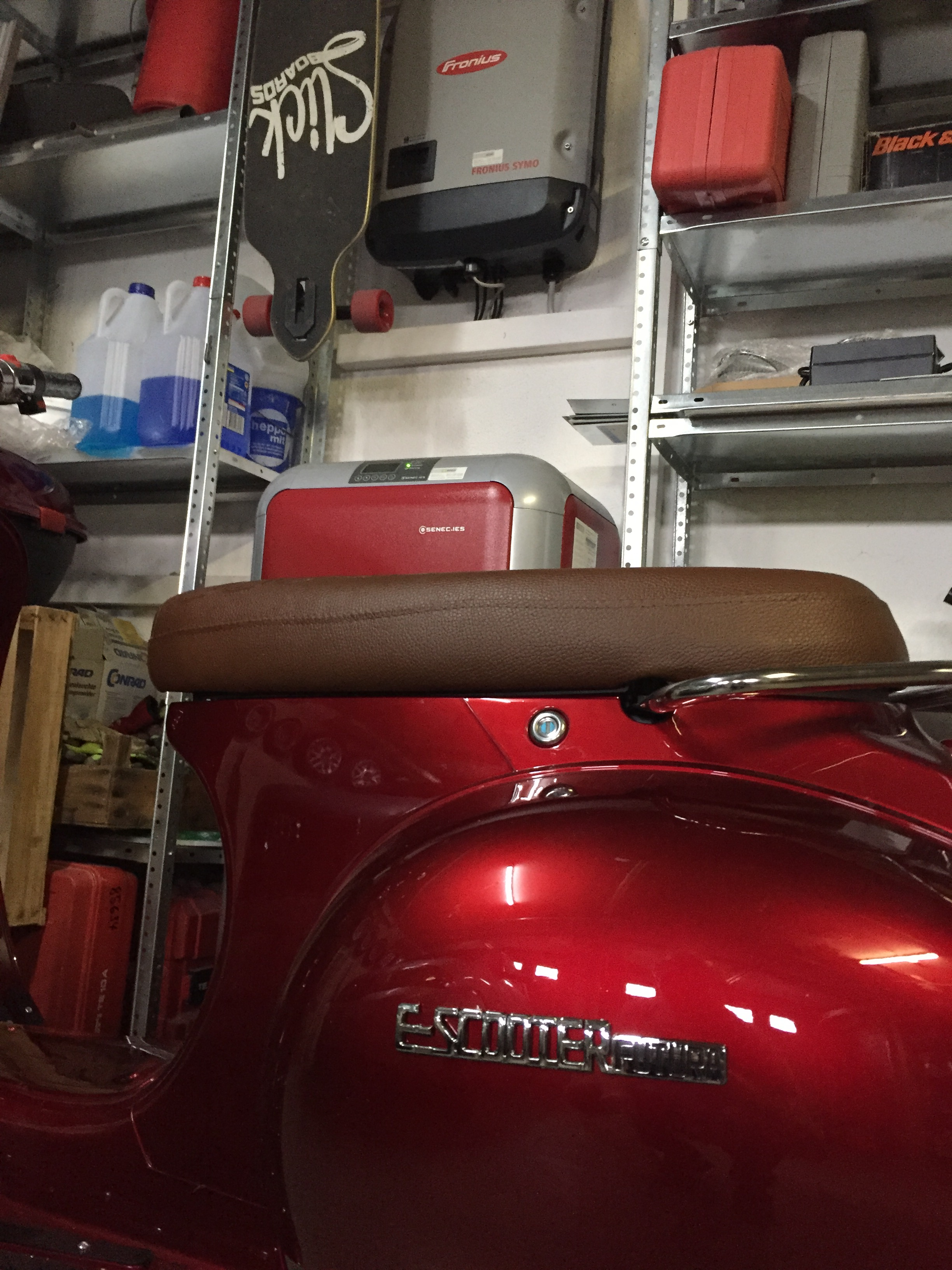 Noch eine Neuerung bei den jetzt ausgelieferten ist ein 3-Stufen-Schalter neben dem Gasgriff mit dem man die Leistungsstärke einstellen bzw. reduzieren kann. Mit Stufe 1 konnte ich bisher nichts anfangen, da ist kein Zug dahinter. Stufe 2 reicht vollkommen für eine Person auf dem Roller im Stadtverkehr und mit Stufe 3 fährt es sich auch mit Beifahrendem noch gut und flott.