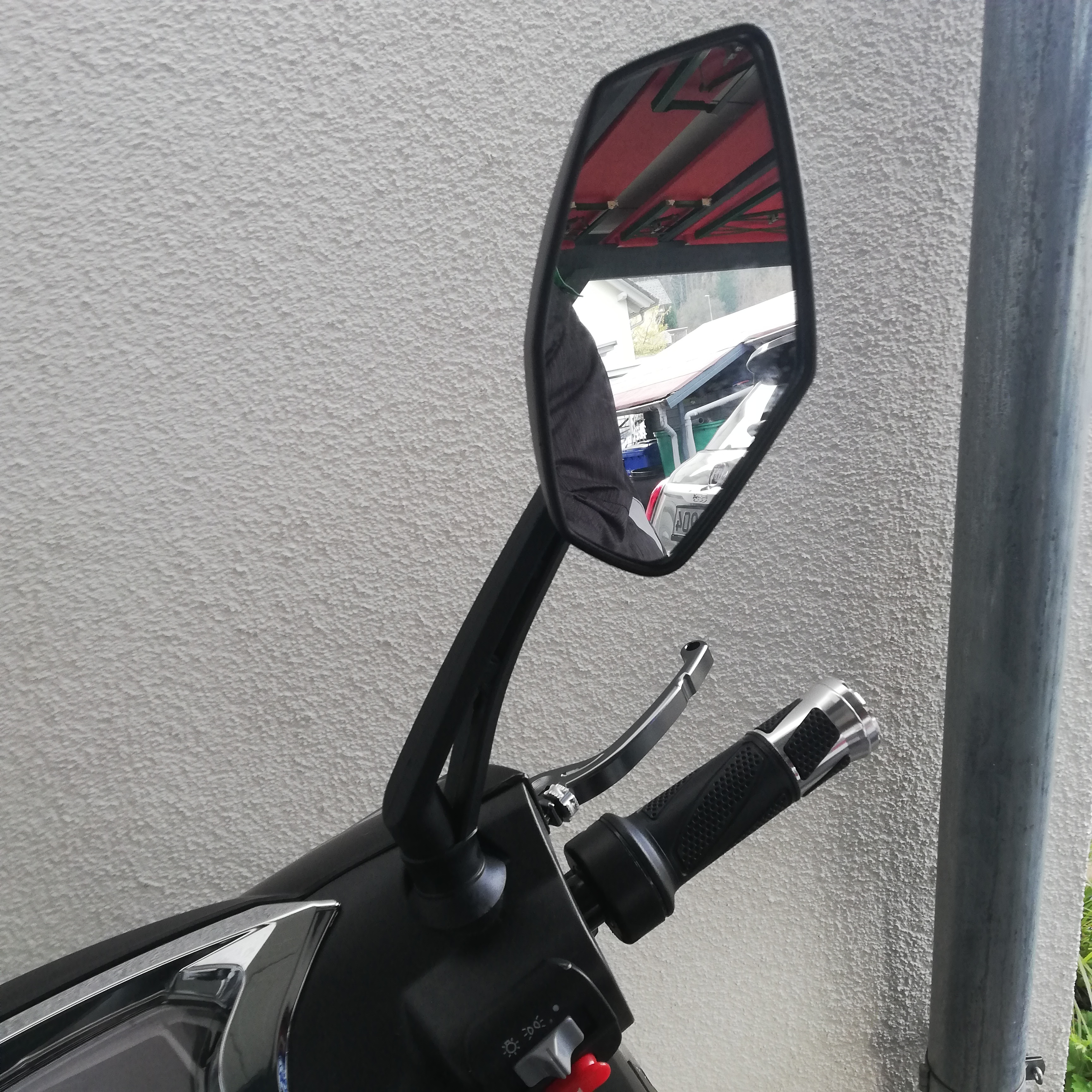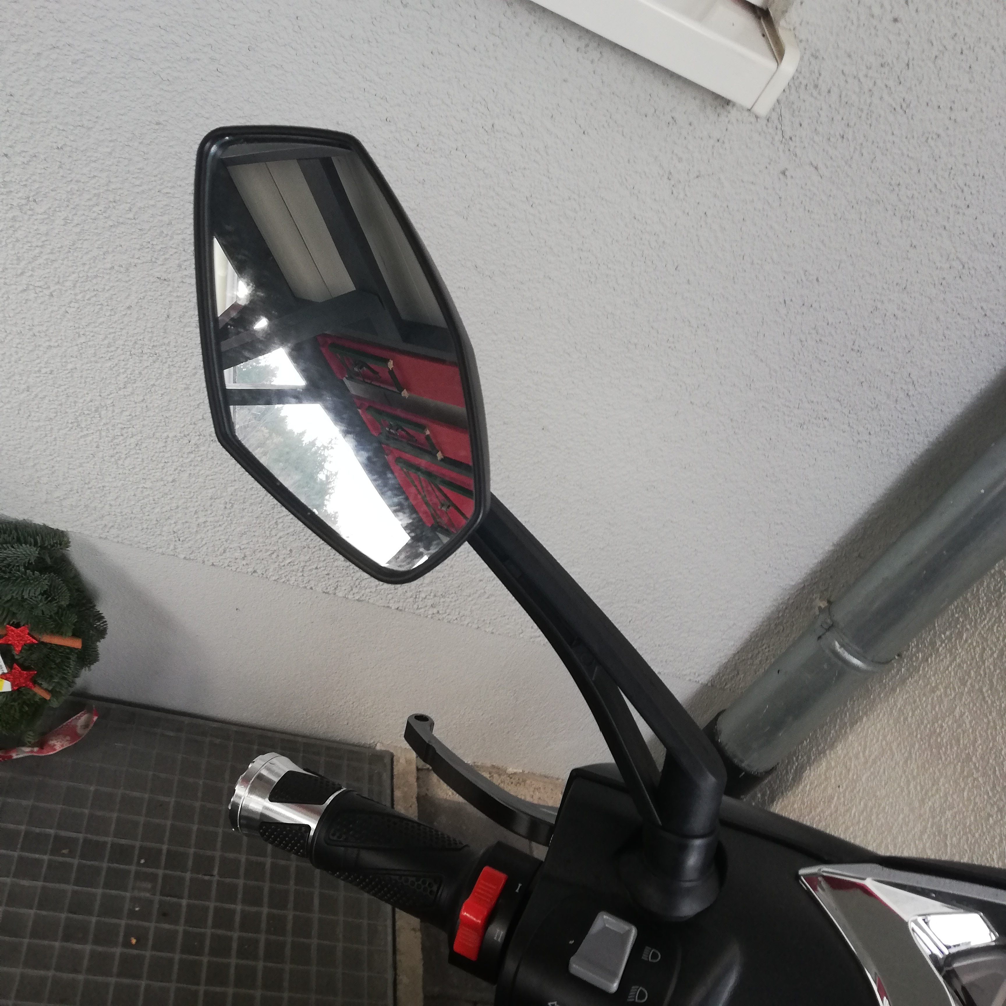 Hallo, ich habe auch lange an den Orginalspiegeln gearbeitet, aber jetzt passt es bei mir. Ich bin 183 cm groß. Die Orginalspiegel haben auch eine Kontermutter zum feststellen der Bügel unter der Abdeckung. Anbei meine Bilder.