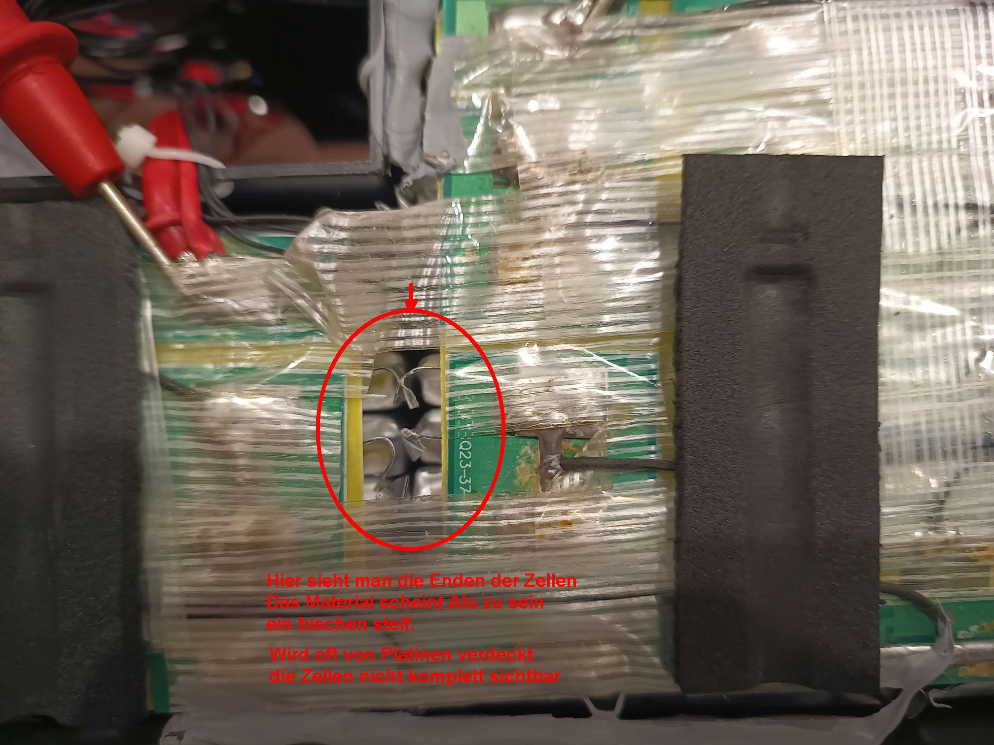 Da defekt habe ich mal ein Akku aufgemacht und war erstaunt das da keine Standard Zellen so wie ich sie kenne Verbaut sind 18650 oder ähnliche, nein es sind Recheckigen ungefähr 7 mm hoch, leider konnten ich keine Bezeichnung erkennen ich wollte den Akku nicht weiter zerlegen (nicht getraut weil man dann doch mechanisch etwas an den Zellen macht). Habe alles in Bilder festgehalten.