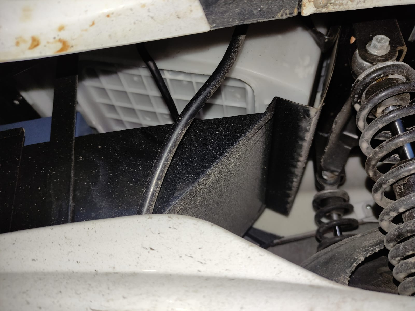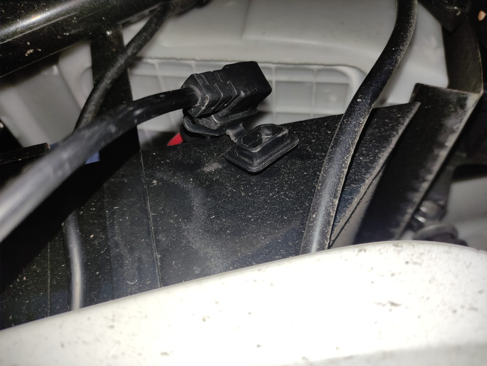 was allerdings geht, ist, wenn du den roller auf die seite legst, und von unten versuchst das kabel zu erwischen wo zum stecker des akkus geht.