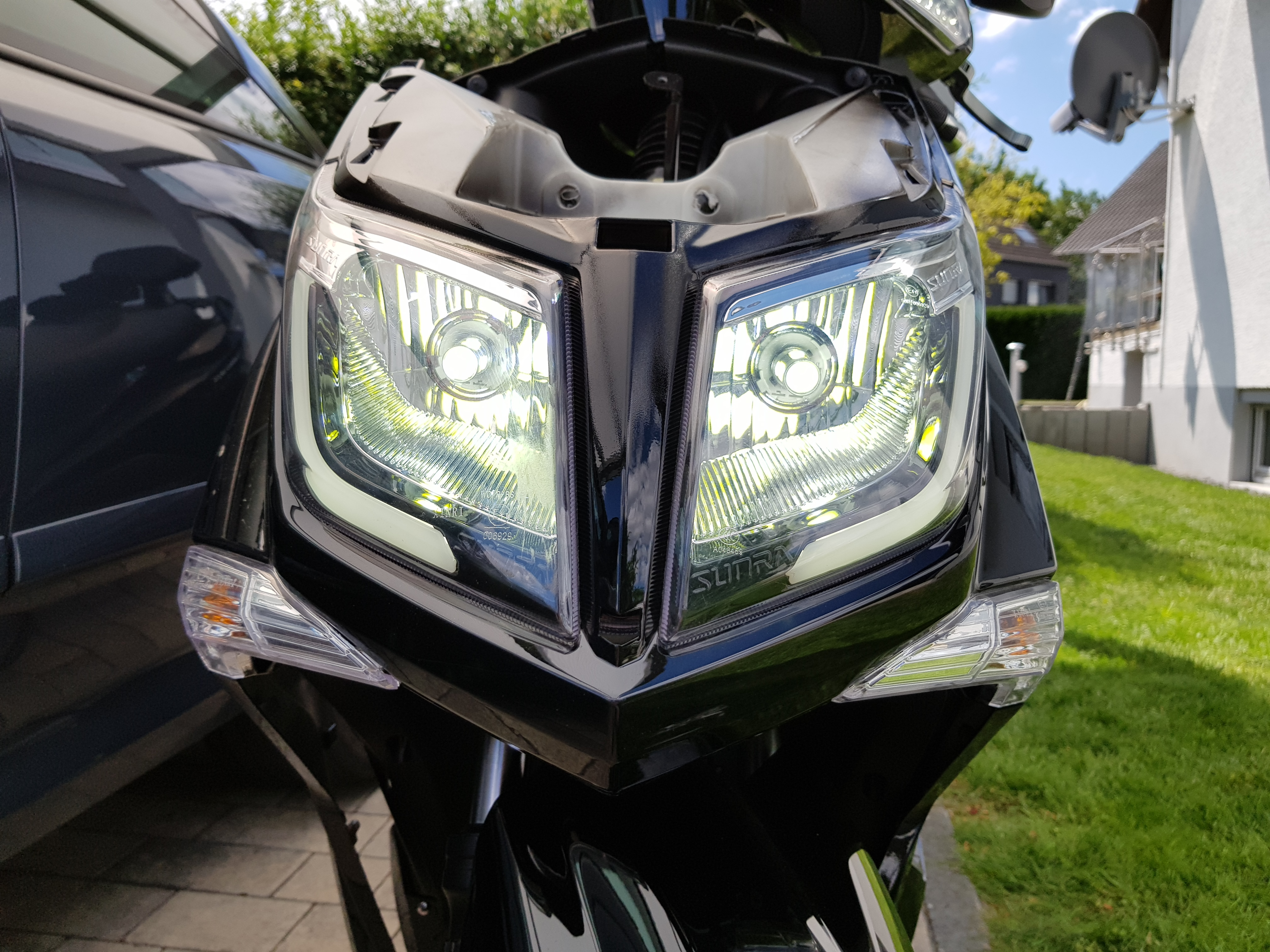 Da ist ohne Licht fahre aber auch keine Lösung, oder. Sind das LED Scheinwerfer ab Werk oder hast Du BA20-LED Leuchtmittel statt normaler Bilux-Birne drin?