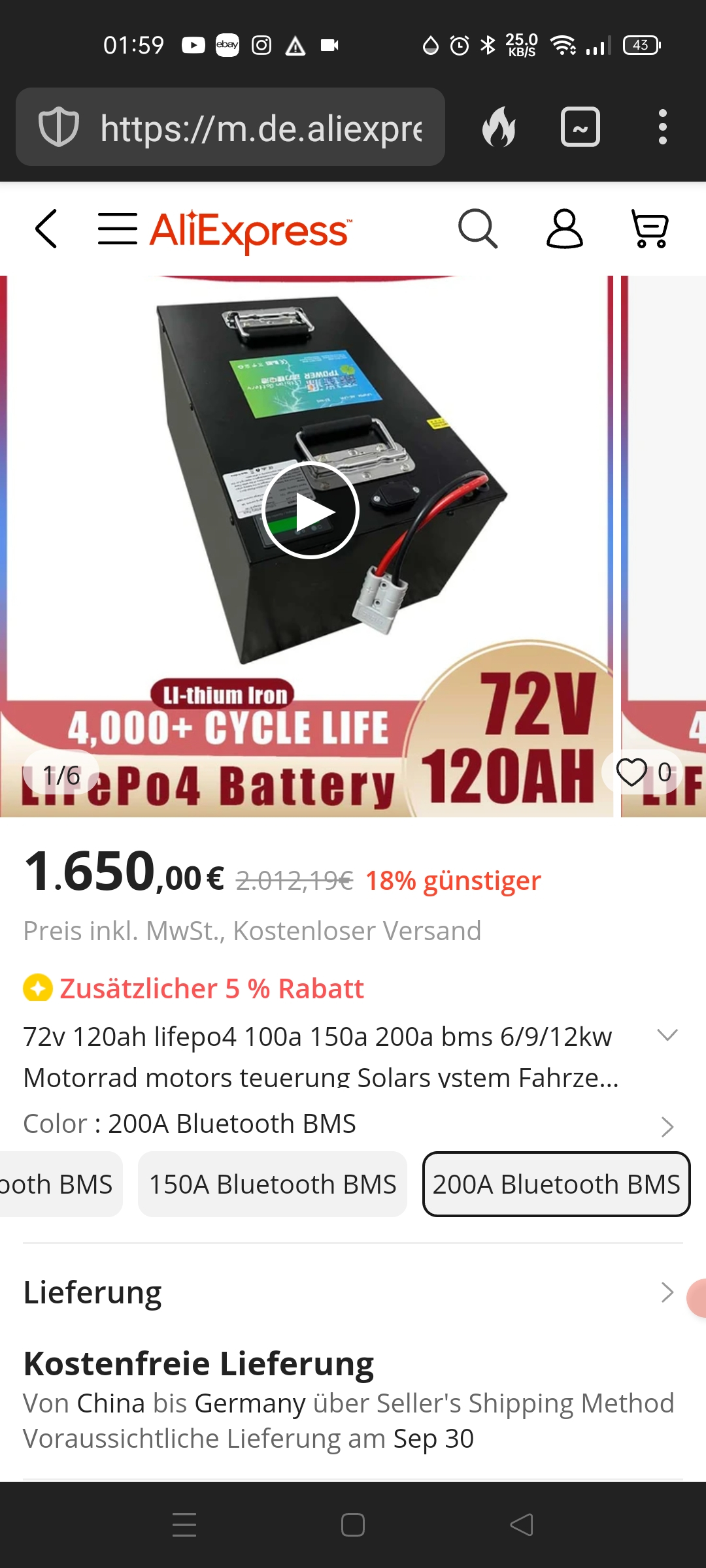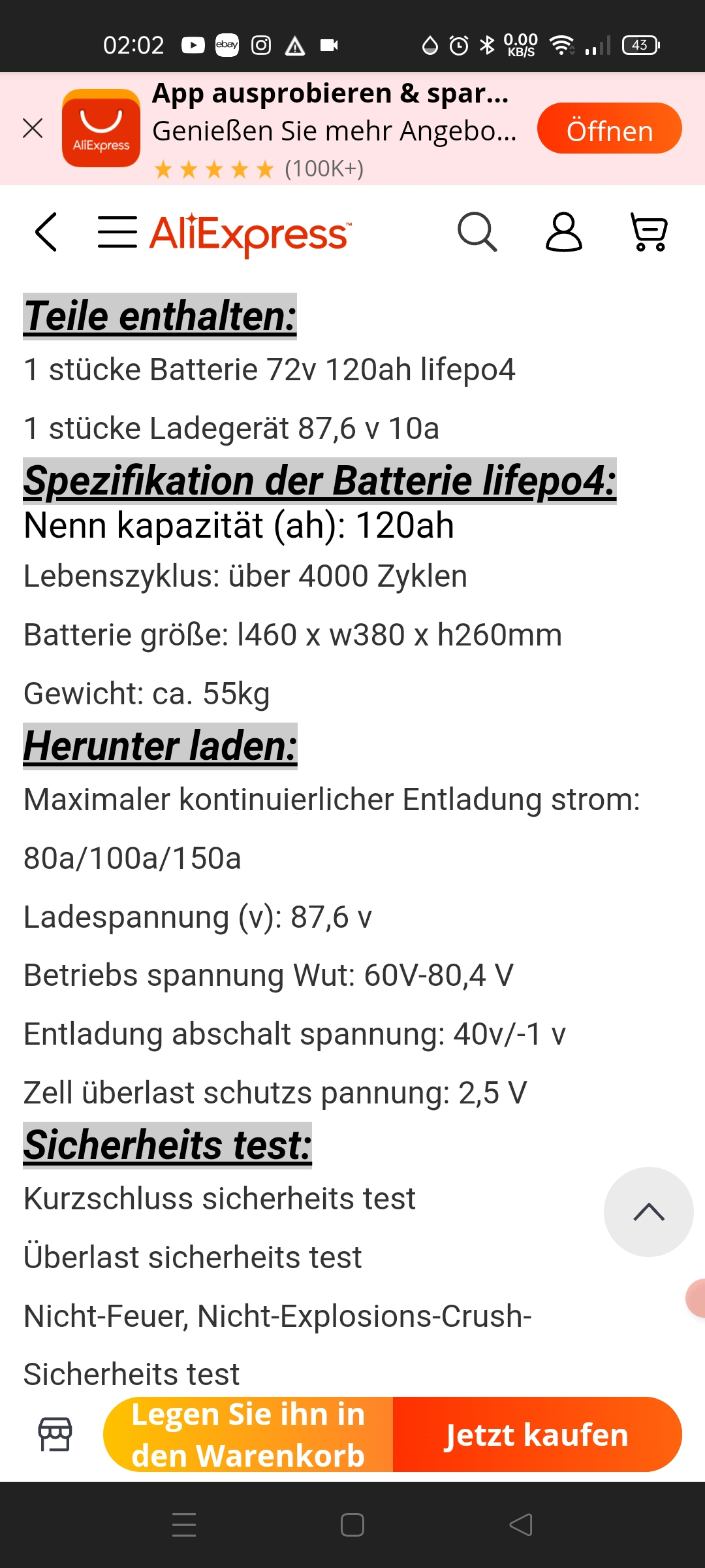 Danke für den Link, für das nächste Batterieleben würde ich mir die folgende Lifepo4 Batterie wählen, siehe Fotos. Träumen darf man ja, aber bis dahin muß ich erst noch die nächsten Jahre meine 72 V 62 Ah Bleigelbatteriebank zu Ende nutzen.conny-r hat geschrieben: ↑Mi 19. Jul 2023, 09:23.