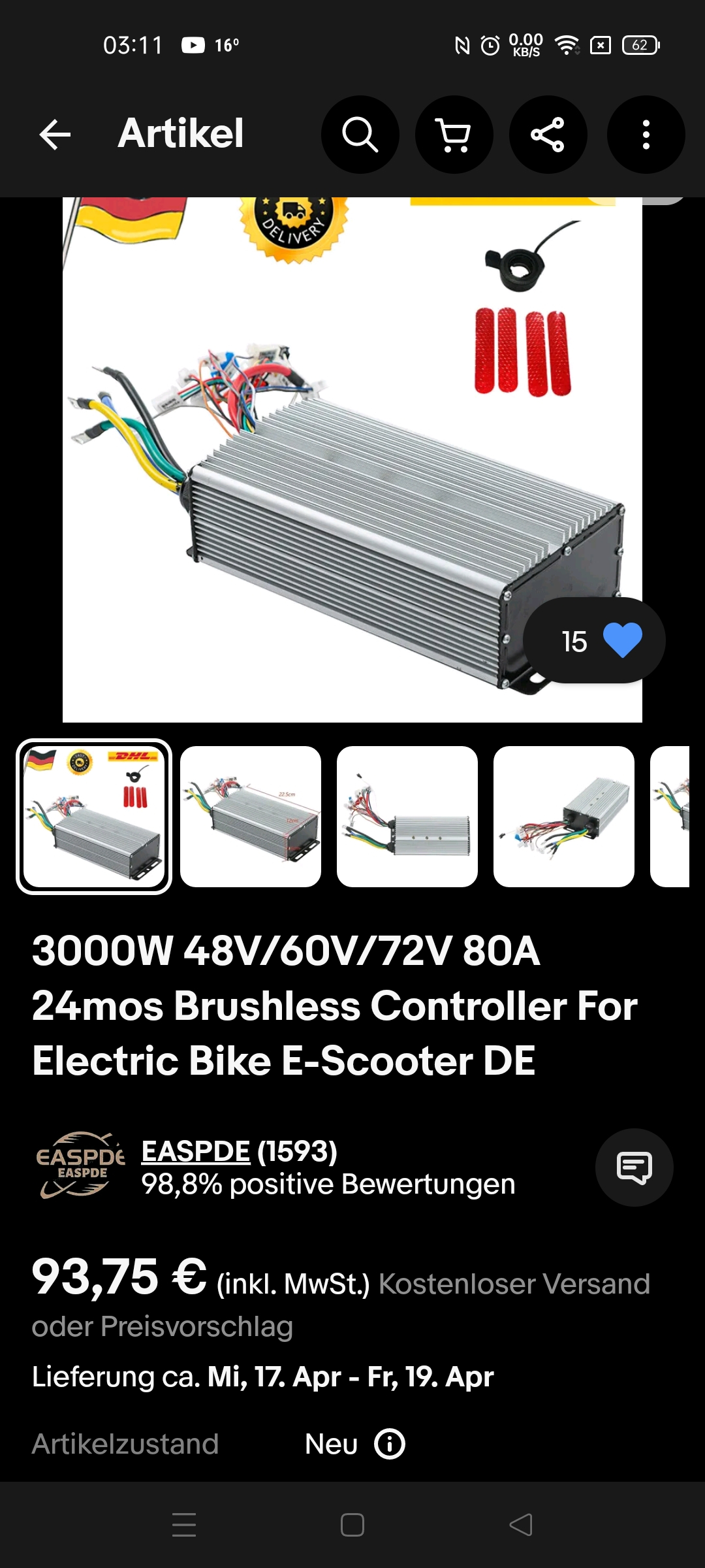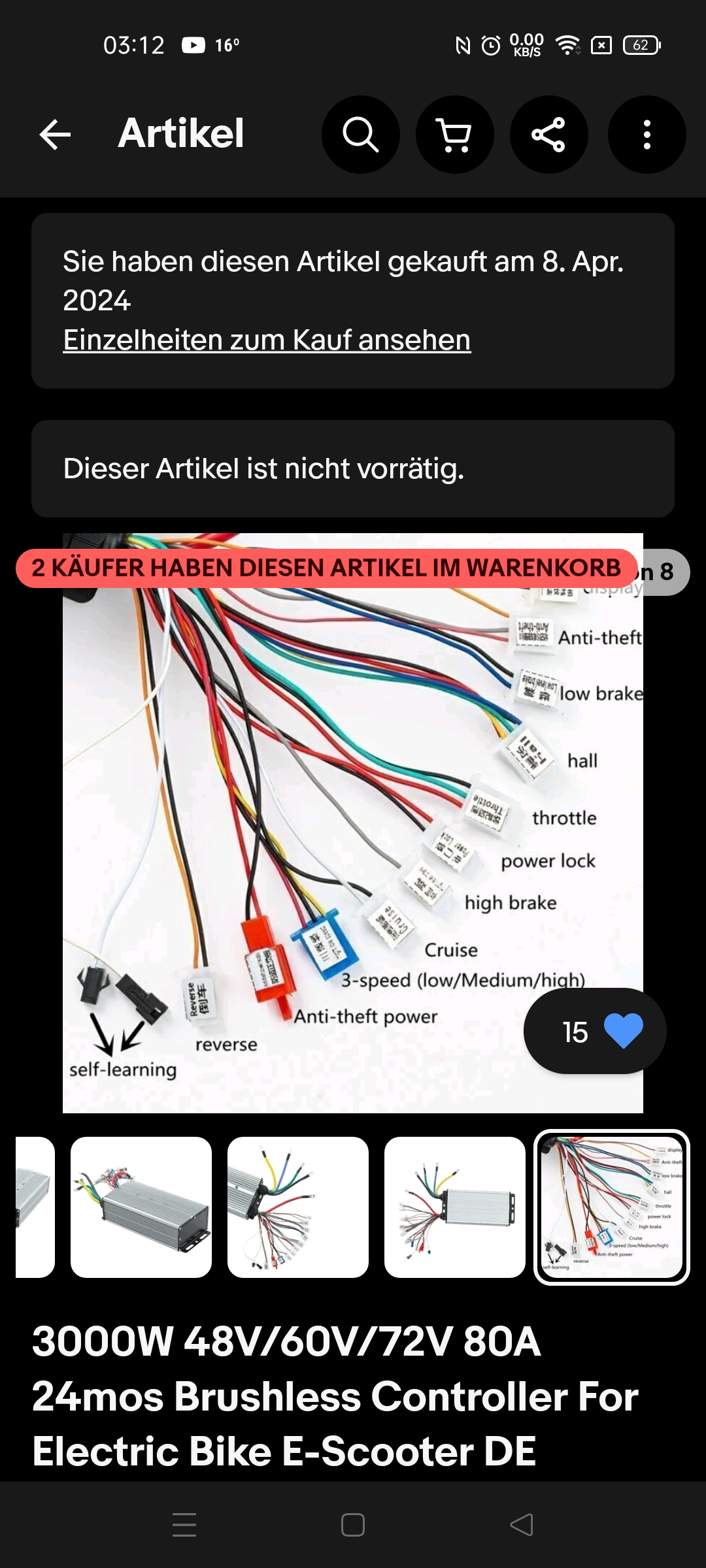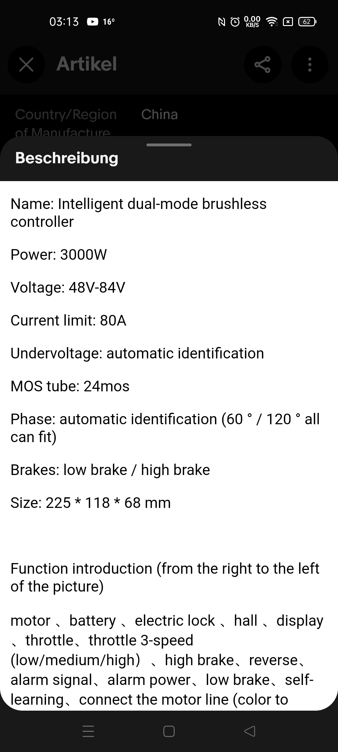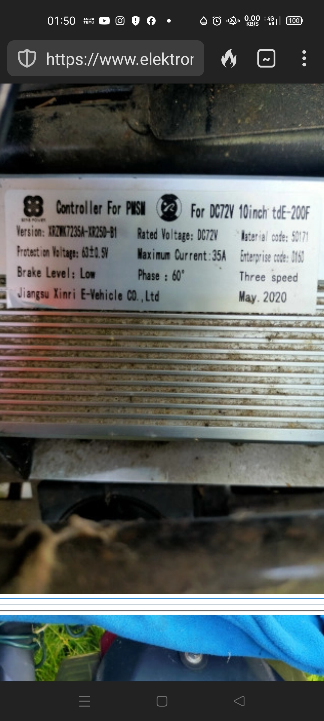 siehe Seite 12 , Bild jetzt nochmal als Screenshot. 60 Grad Phasenwinkel, 72 V usw. Ich bin immer noch auf der Arbeit, somit beabsichtige ich morgen das Fahrdrehgriff (Gasdrehgriff) auszubauen.
