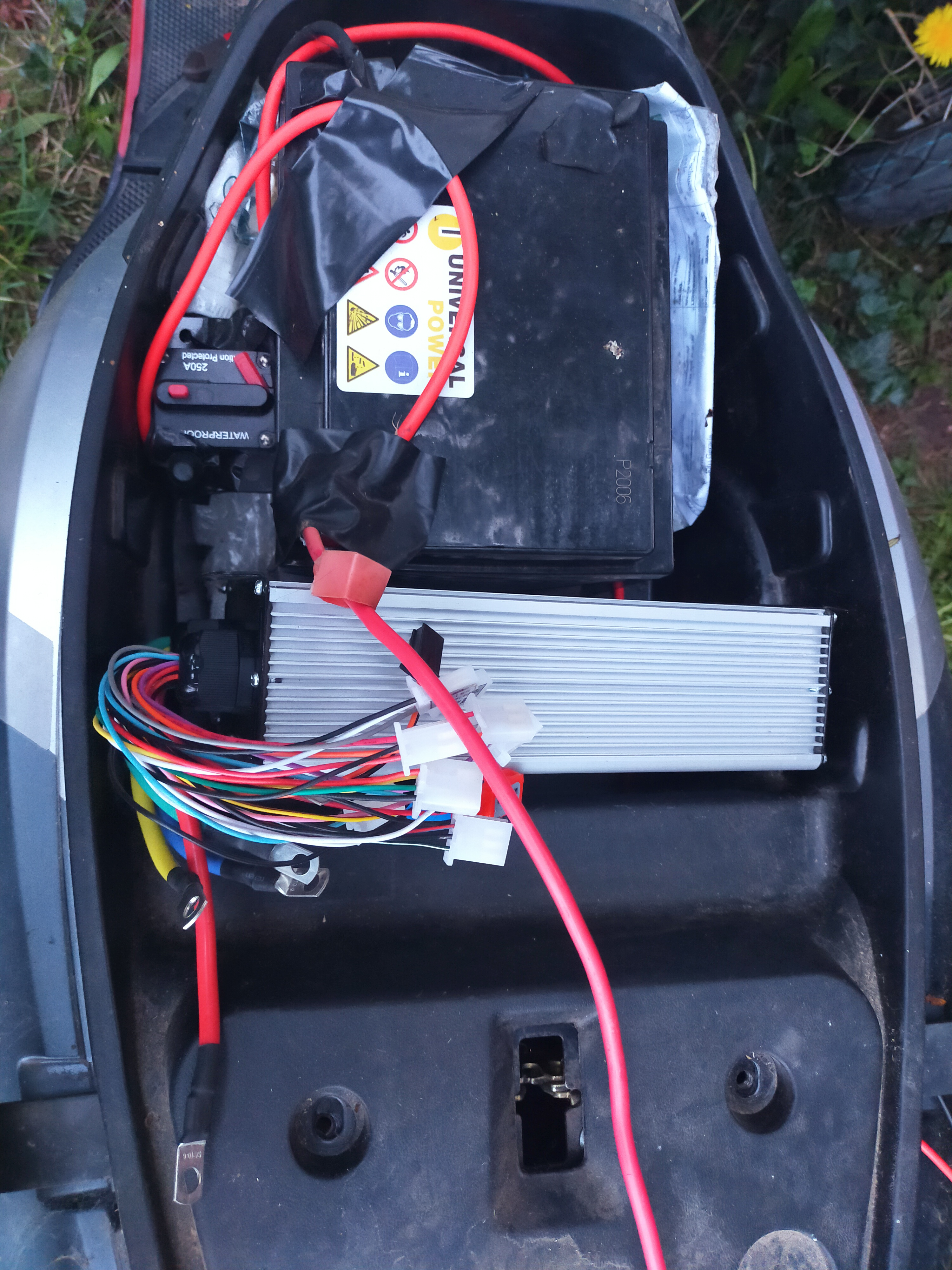 Soeben habe ich von meinem anderen Leo Baujahr 2020, den originalen 35 A 72 V Controller ausgebaut. Der Neue 72V 80 A passt nicht in das Controlerfach, auch nicht in den Akkuraum. Ich werde ihn in die Sitzbank einbauen und muß alle Kabel verlängern. Genaue Beschreibung folgt, ich bin jetzt zu müde, muß schlafen, da ich in wenigen Stunden zur Arbeit muß.