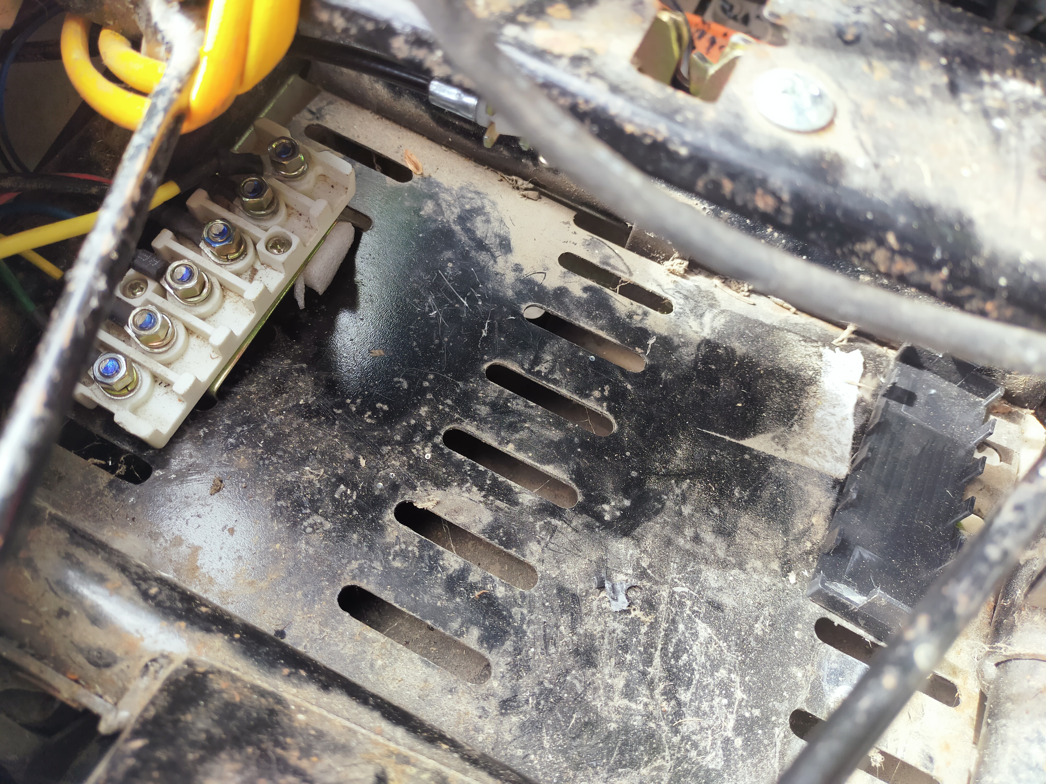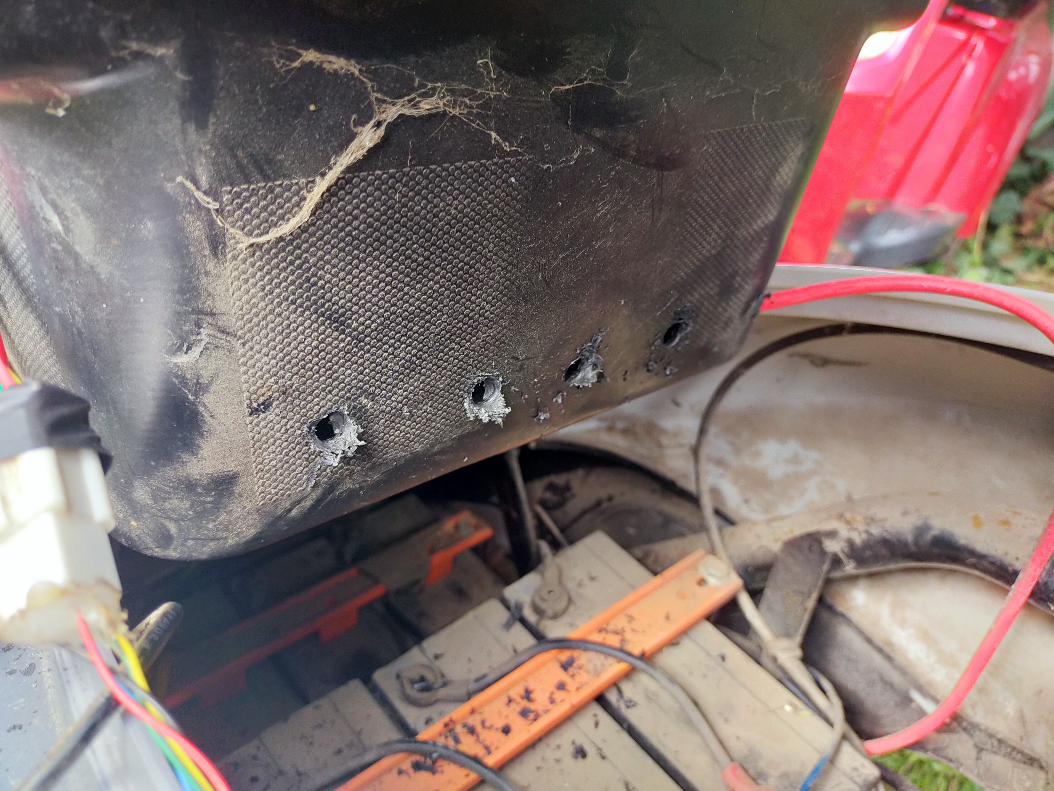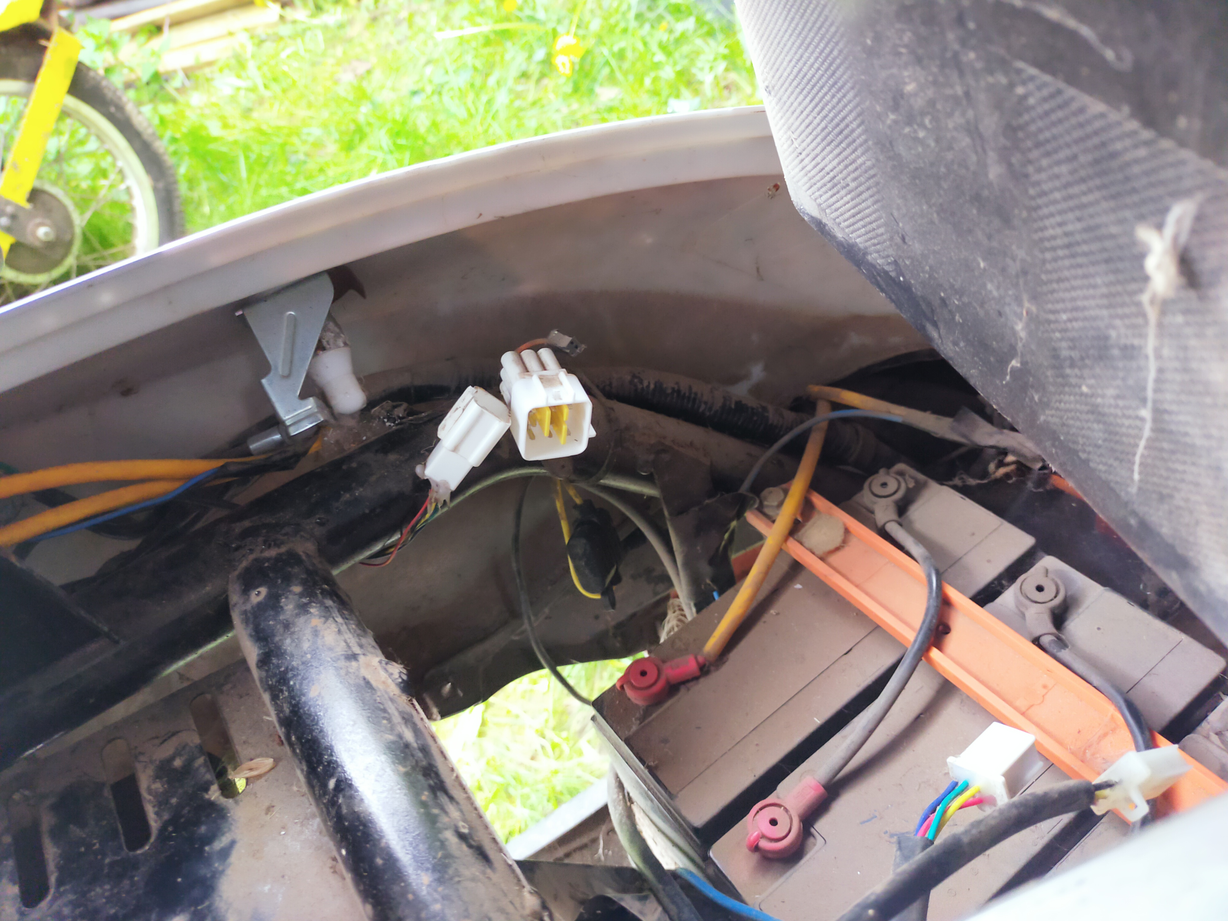Für Interessierte füge ich folgende Foto hinzu. Heute habe ich mehrere Löcher zwecks Belüftung und ein großes Loch zur Kabeldurchführung in die Sitzwanne gebohrt. Die Befestigungsmetallschienen des Controllers habe ich mittels Zange und Hammerschläge umgebogen, damit der Controller in die Sitzbank passt. Die nächsten Tage werde ich die Verkabelung beginnen, denn jetzt muß ich ja bald zur Arbeit mit meinem zweiten Elektroroller Leo fahren.