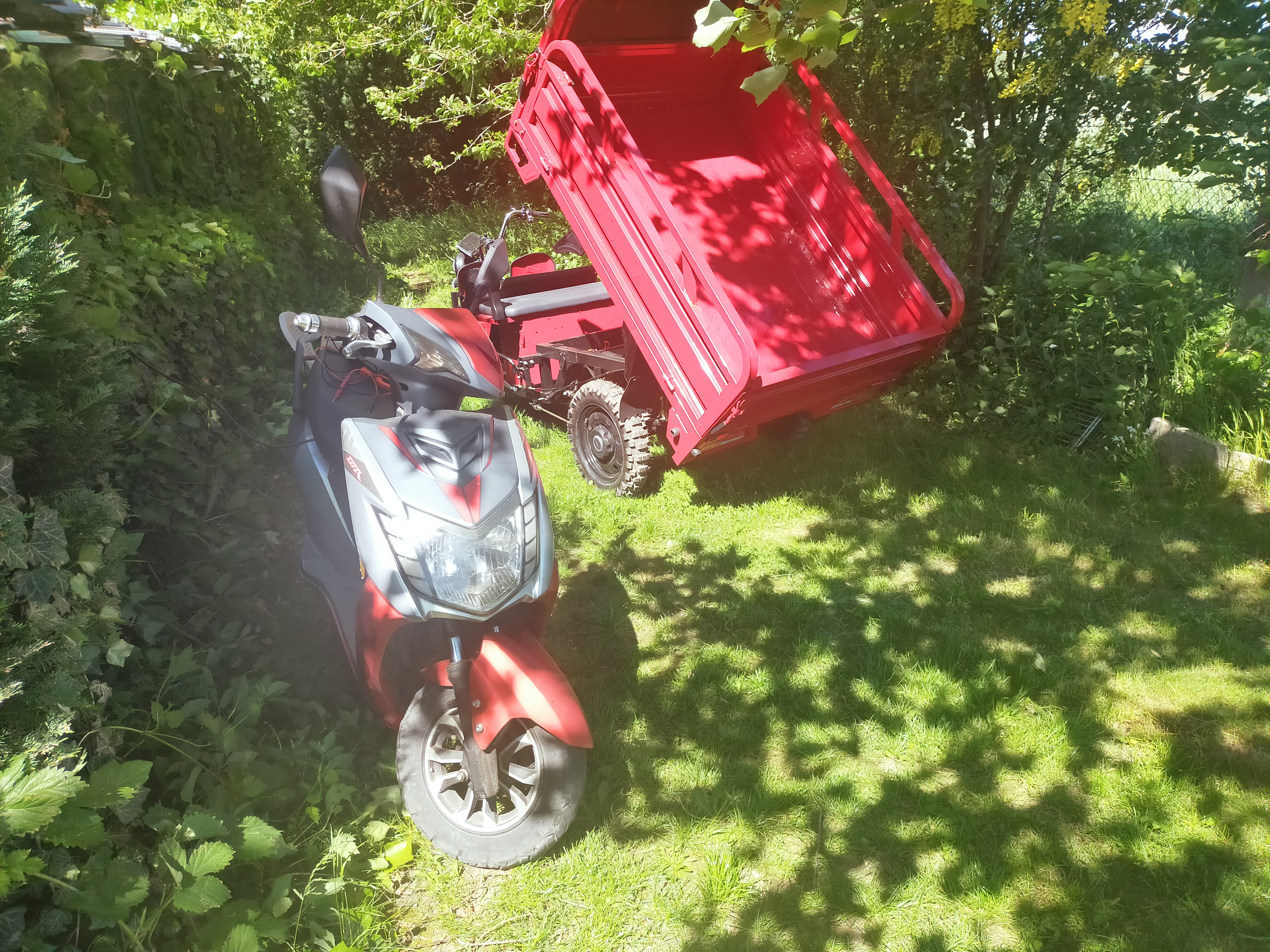 hier ist mein neues Bastelobjekt zu finden. Ich kaufte einen Volta VT5+, in welchen ich die aus meinem Leo ( 62 Ah Batteriebank) ausgebauten Akku einbauen werde, da der Leo nicht mehr fährt und ich keine Lust habe, nach Reparatur, vielleicht 30 km weit weg von zu Hause mit dem Leo liegenzubleiben und ich diesen mit mir zusammen 260 kg wiegenden Roller, nach Hause zu schieben. Auch ist es im Winter aufgrund des hohen Gewichtes der von mir zusätzlichen 6 Bleigel- Akku mit jeweils 42 Ah verbauten Batterien eine Qual sich durch die hohen Schneeverwehungen kämpfen zu müssen. Ein weiterer Grund den Leo nach 3 Jahren und nur 6000 gefahrenen Kilometern diesen dauerhaft Stillzulegen, ist der 1600 W Radnabenmotor, welcher keine befriedigende Steigleistung am Berg hat. Darum kaufte ich das Trike VT5+ mit Untersetzungsgetriebe.