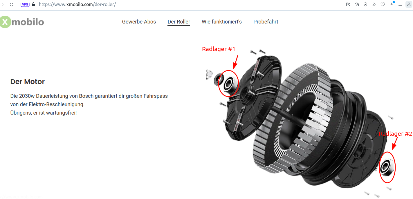 - Das Hinterradlager gibt es anscheinend nicht einzeln; ich habe nur den kompletten Motor gefunden. Das ist schon heftig, wegen eines Lagers gleich den ganzen Motor austauschen zu müssen.