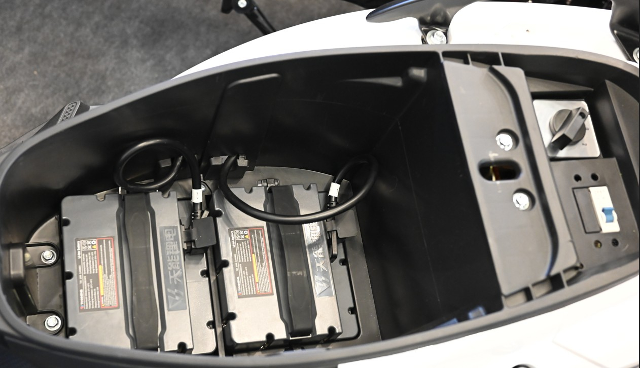 Den neuen FALCON Double (kann aber Modelljahr 2025 gewesen sein) habe ich mir Ende 2024 auf der Messe in Köln angesehen. Der hatte den Umschalter (unter der Sitzbank), um zwischen den Akkus hin und herzuschalten: Ich würde aber davon Ausgehen, dass der FALCON Double-Roller technisch immer identisch ist und die Max-Range-Version nur deshalb eine höhere Geschwindigkeit erreicht, weil der 20Ah-Akku bei 20 Ampere-Dauerstromfluss 1-2 Volt weniger an Spannung aufrechterhalten kann, als der 30Ah-Akku der Reichweitenversion (zumindest bei Temperaturen um 10-15°C wird da ein großer Unterschied bei der erreichbaren Leistung sein).