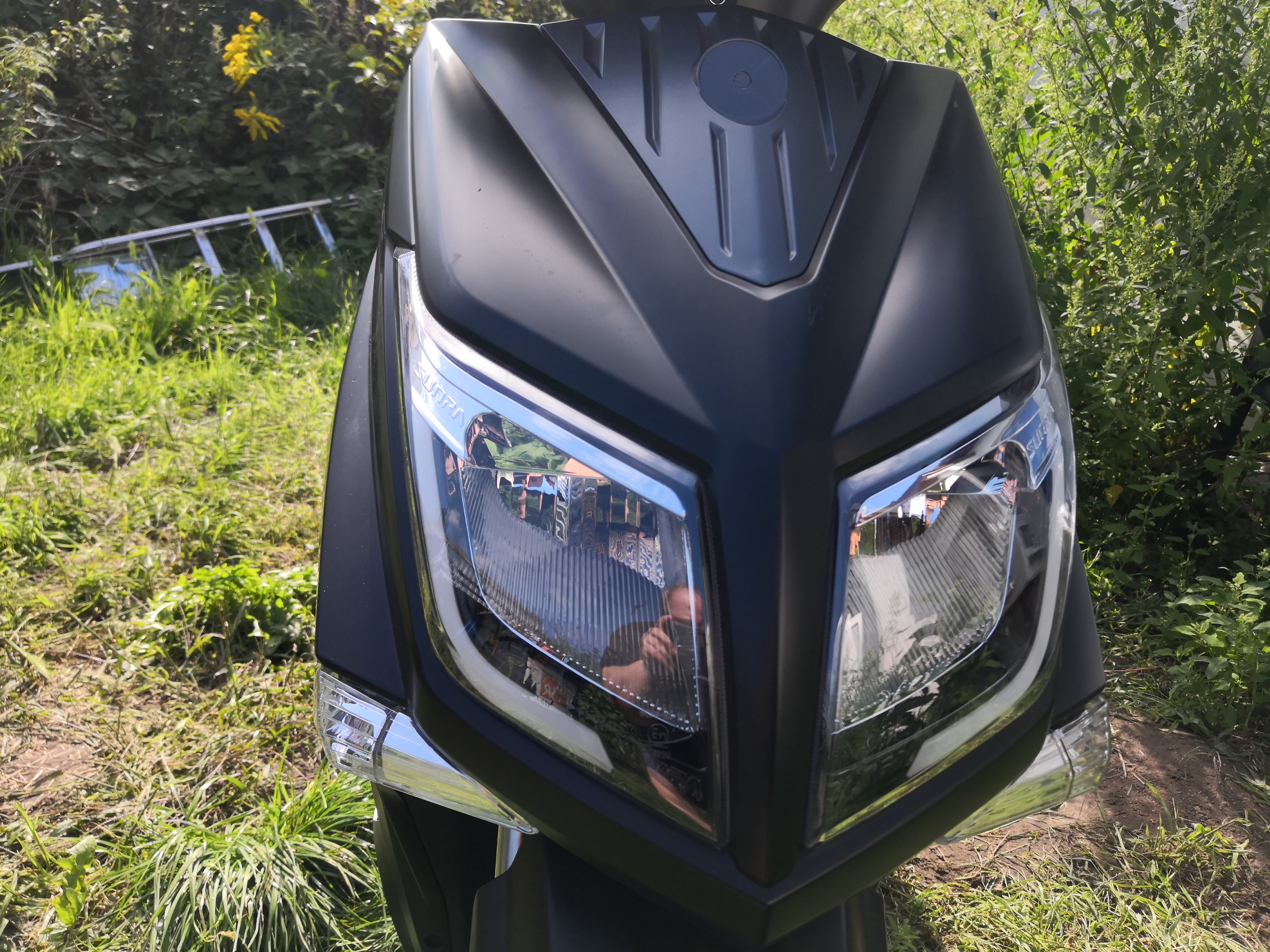 Also seit einer Woche bin ich nun auch stolzer Besitzer eines Hawk 2.0 li und habe nach dem Dauerregen nun die ersten Kilometer fahren können. Nach dem Auspacken merkte ich sofort, daß vorne das Emblem fehlte. Ich habe den Roller über Amazon gekauft und mein Roller hat komischer Weise ganz andere Scheinwerfer als das Model auf dem Foto von Amazon. Da sieht man zwei runde LED s hinter dem Scheinwerferglas(Plastik), also zwei Kreise. Bei mir ist zu erkennen, daß ziemlich weit hinten jeweils recht u links drei runde Lampen zu sehen sind. Bei normalen Abblendlicht leuchten wohl jeweils zwei, bei Aufblendlicht 3. Desweiteren habe ich bei Futura im Video gesehen, dass das Krokodilemitat für die Sitzbank nicht mehr verwendet wird, bei mir ist es drauf. Dann staune ich, daß ich um ein Versicherungskennzeichen fachgerecht anzubringen, mir eigentlich einen Halter im Zubehör kaufen müßte. Unter meinem Modischalter habe ich einen grünen Taster, ich weiß nicht wofür der da ist. In dem kleinen Futura Heftchen steht wenig drinne und das users Manual ist englisch. Für das Geld wäre es schön eine ausführliche deutschsprachige Bedien- und Pflegeanleitung beiliegen zu haben. Nun zum Fahren. Ich habe den Akku nun erst zum 2x geladen. Das erste Mal bei ca 18%, einem grünen Strich im Tacho. Es dauerte 4.30h bis die Ladung beendet war und das Ladegerät war kochend heiß, da der Lüfter nicht angesprungen war. Ich habe mit diesen 100% ca 33 km geschaft mit Vollgas zu fahren, fast ohne Unterbrechungen. 1x zur Arbeit u zurück. Es waren anschließend noch 22% auf dem Akku. Die Rückfahrt wurde im Dunkeln mit Abblend-u Aufblendlicht absolviert und nicht zu vergessen, ich wiege 160kg und die Außentemperatur Betrug ca 10-16 Grad. Der Roller fuhr auch mit mir ca 52 kmh, anfänglich, hielt aber die ganze Zeit seine 43-45 kmh. Also das find ich richtig gut als Fahrleistung. Natürlich nahm ich auch ein Klappern von hinten unten? wahr. Na mal sehen was es ist. Nun habe ich den Akku das zweite mal geladen und gleich ging der Lüfter vom Ladegerät an. Zur Ladezeit kann ich leider nichts sagen, bin eingeschlafen. Habe dann den Akku von Ladegerät getrennt u auf den roten Knopf vom Akku gedrückt um den Füllstand zu sehen. Es blinken nut der rote Knopf u eine grüne Leuchte. Nun dachte ich der Akku sei in A.... Aber nein, eingebaut zeigt mir der Tacho 100% an. Puh, Glück gehabt. Sonst blinken ja alle Lampen wenn der Akku voll ist. Ist das normal? Mann hat ja leider kein anständiges Bedienbuch oä., wo man soetwas nachlesen könne. Ansonsten wie gesagt bin ich zufrieden. Den Reifendruck hab ich hinten und vorne auf 2,5 gemacht und der Akku sitzt dank beiliegender Klettbandschlaufe fest. Mich interessiert sehr, warum ich andere Scheinwerfer und Sitzbankbezug habe als auf dem Modelfoto von Amazon. Würden alte Teile verbaut?