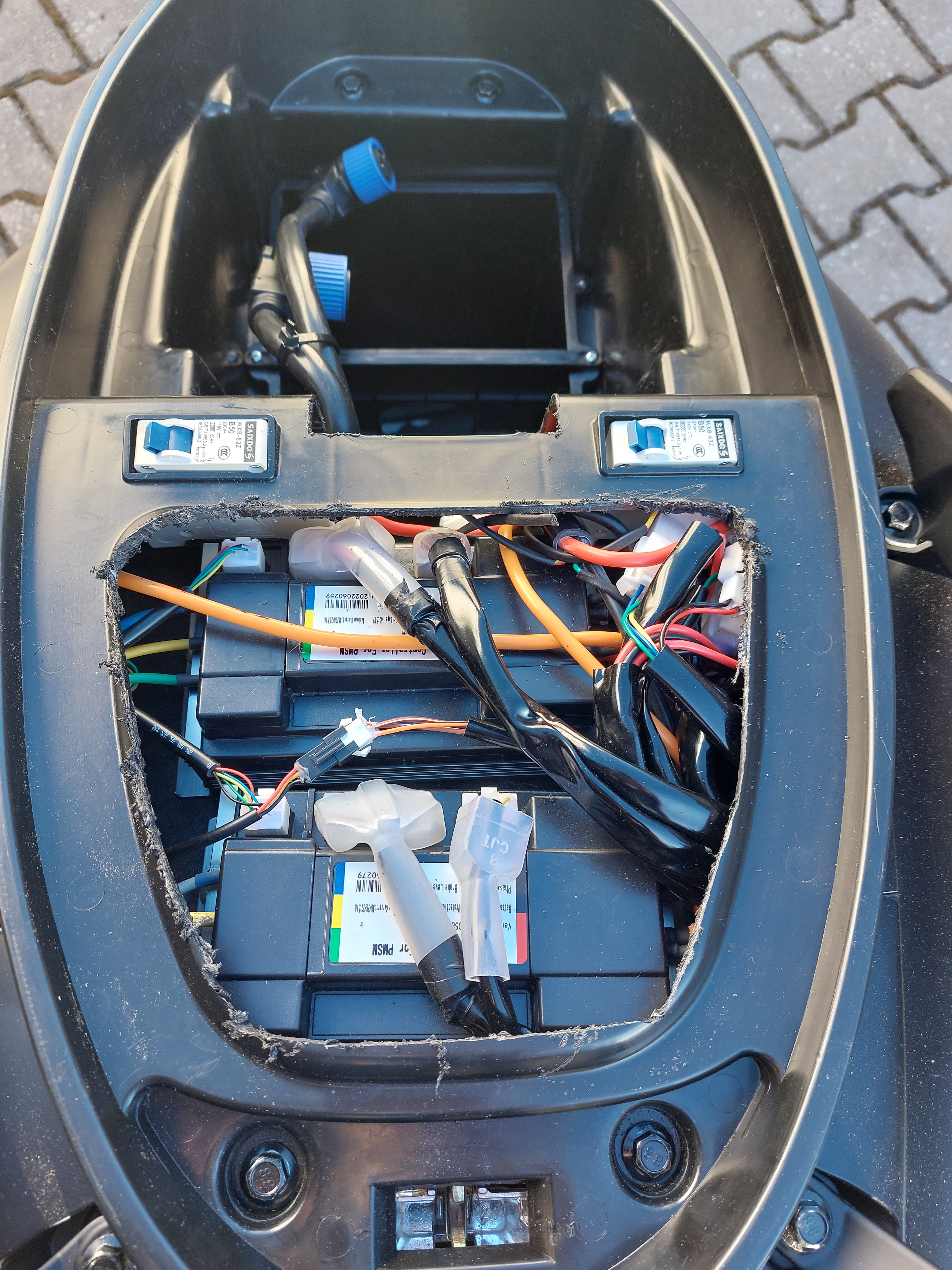 Ich habe bei mir den Ausschnitt noch mehr erweitert, jetzt drückt da nichts mehr auf die Kabel. Fahre seitdem >1000km ohne das Problem, dass der Roller nur noch 45 fährt.