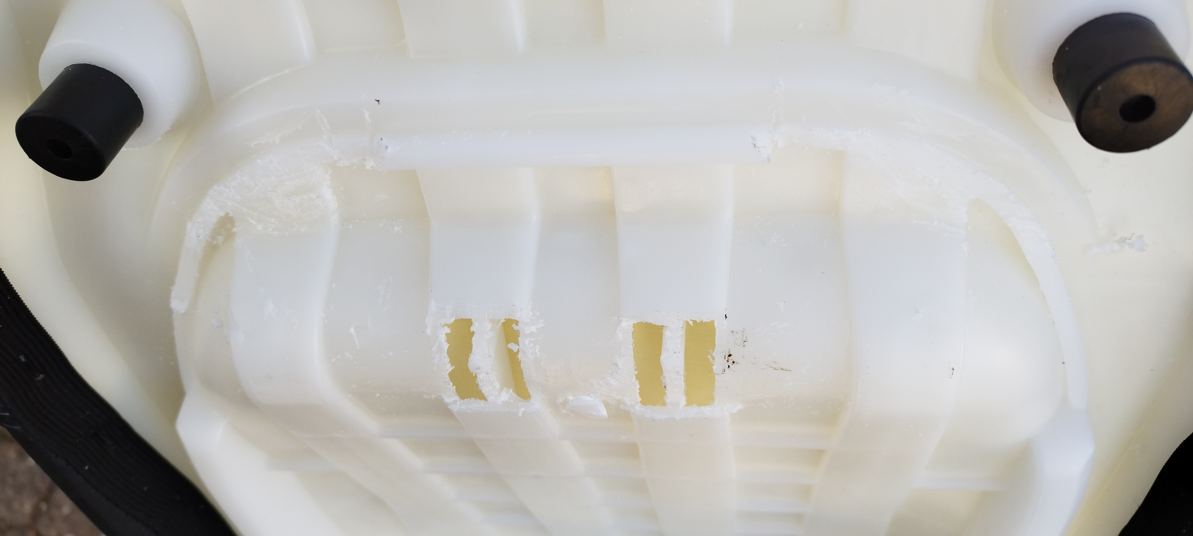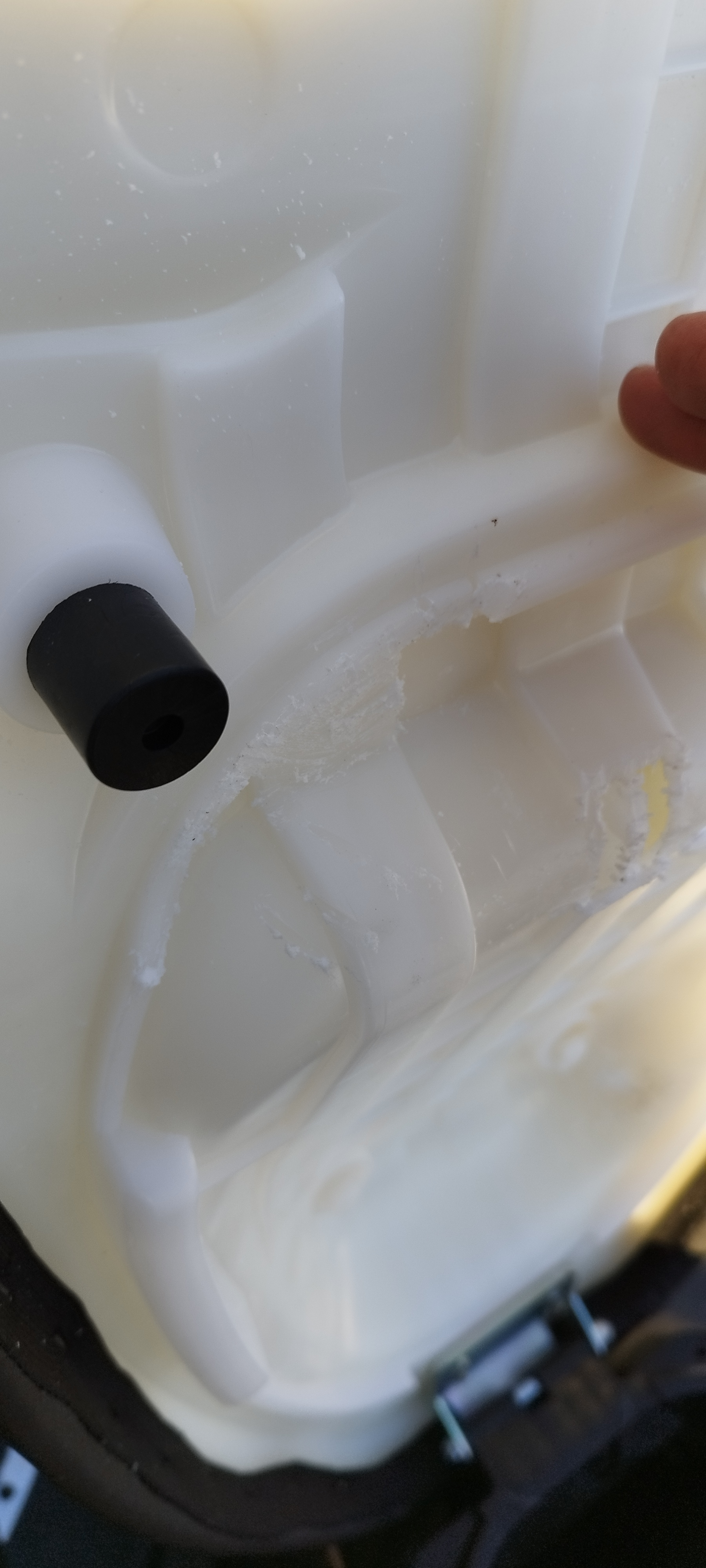 Noch etwas: bei der Übergabe an den Händler ist mir aufgefallen, dass die Aufhängung für den Sitz an der "Akkuschale" von beiden Seiten eingerissen war. Es wurde eine neue Schale von Futura geliefert und die scheint auch vom Material her nicht so spröde zu sein. War vermutlich nicht der erste Roller mit dieser eingerissen Aufhängung.