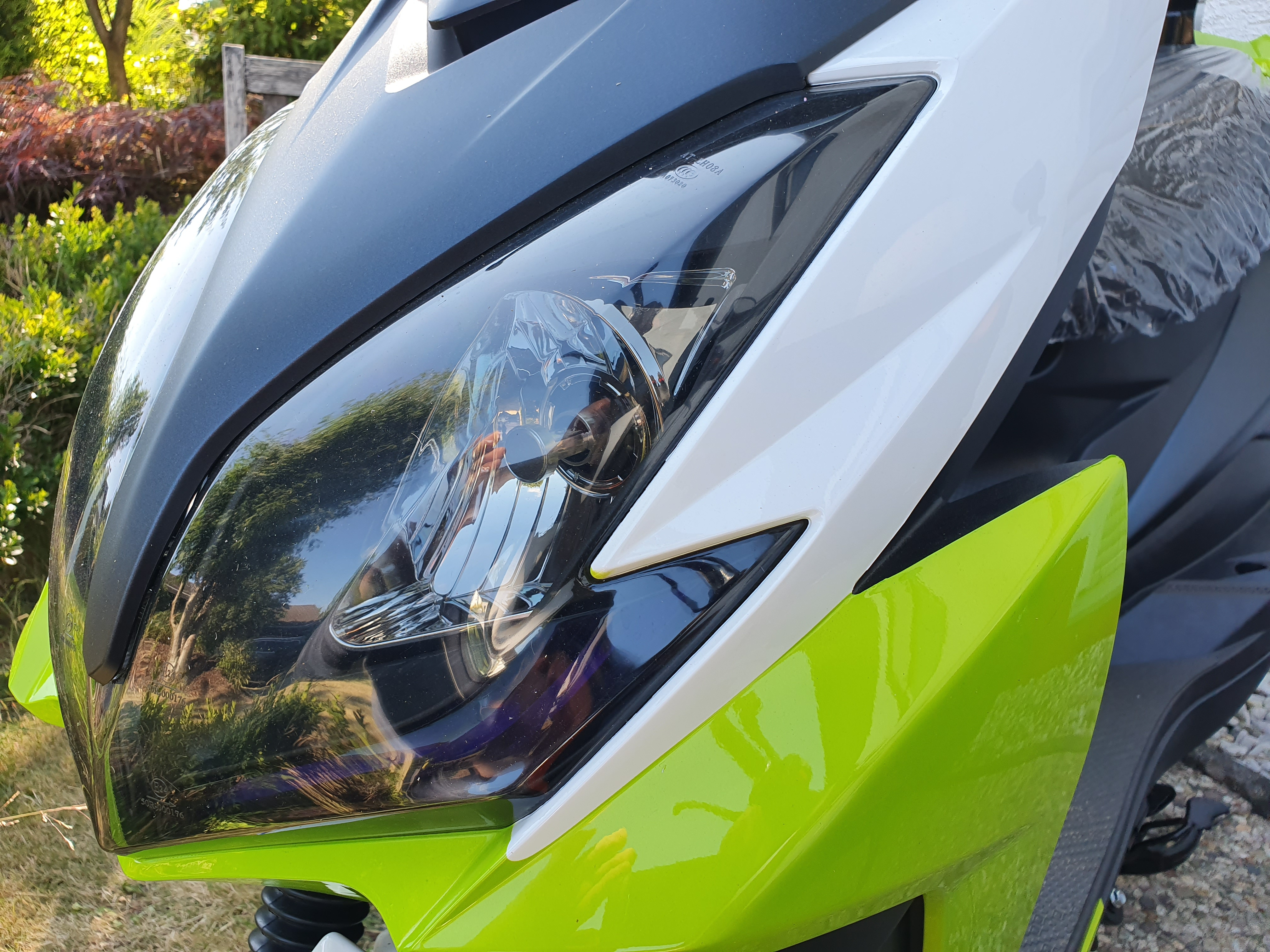 Der Roller verfügt über LED Beleuchtung bis auf die vorderen Blinker, warum auch immer das so ist. Das LED Abblendlicht ist soweit ganz gut aber das Fernlicht ist mir persönlich zu schwach. Es strahlt ein wenig nach oben aber man erkennt nicht wirklich einen großen Unterschied. Im Dunkeln in Kurven fahren ist nicht ganz ohne weil man eigentlich ins nichts fährt. Das Licht leuchtet leider nur starr geradeaus und bei engen Kurven sieht man rein gar nichts. Auch mit Fernlicht ändert sich da nichts weil es eben wie beschrieben nur nach oben leuchtet. Hier heißt es also schön langsam damit nichts passiert.