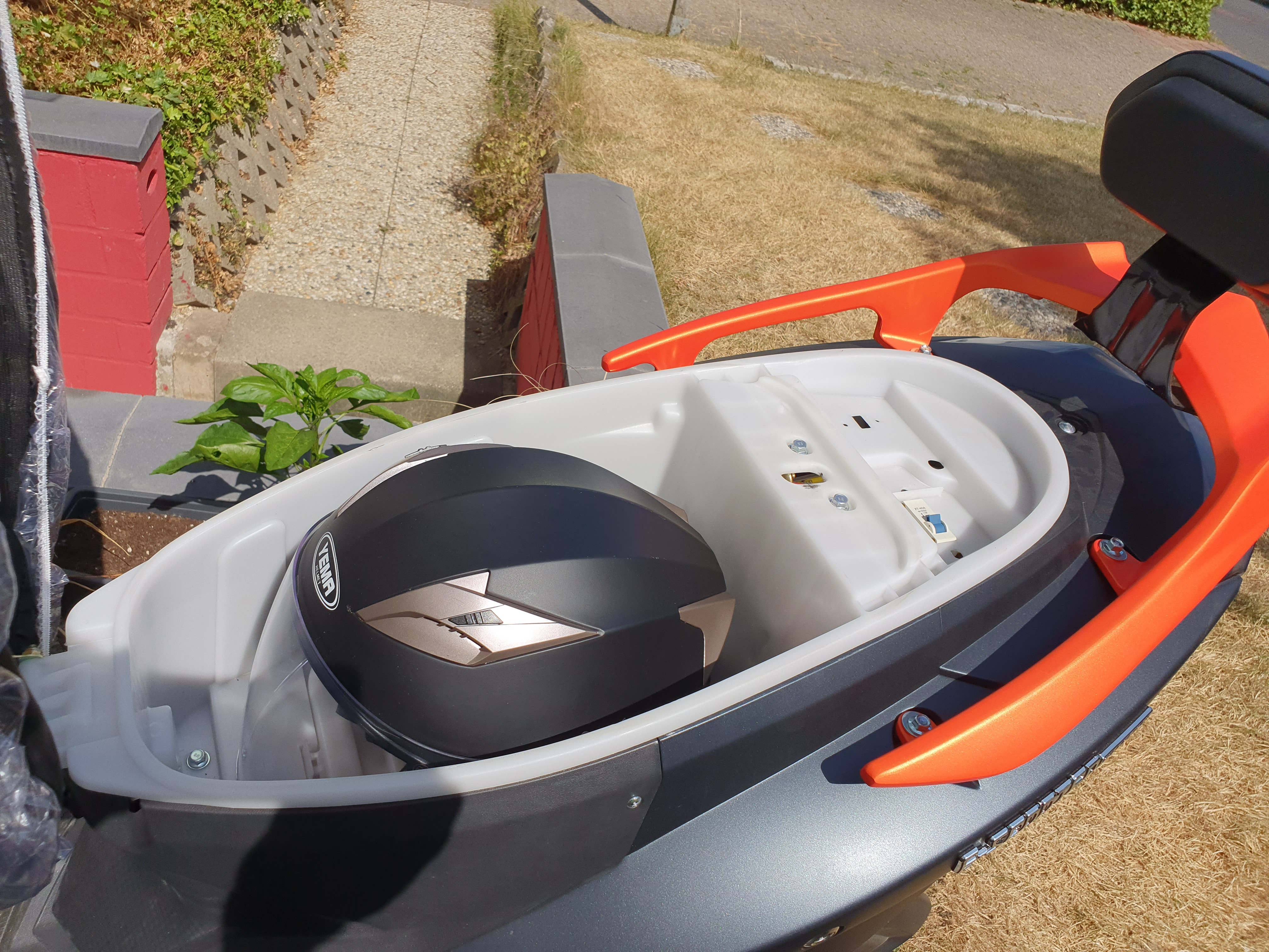 So da gestern das Wetter eher bescheiden war habe ich die Bilder heute mal gemacht. Beginne ich mal mit dem Helmfach. Ja es passen da Helme rein aber Achtung!!! Ich habe einen Jethelm in Größe XL siehe Foto