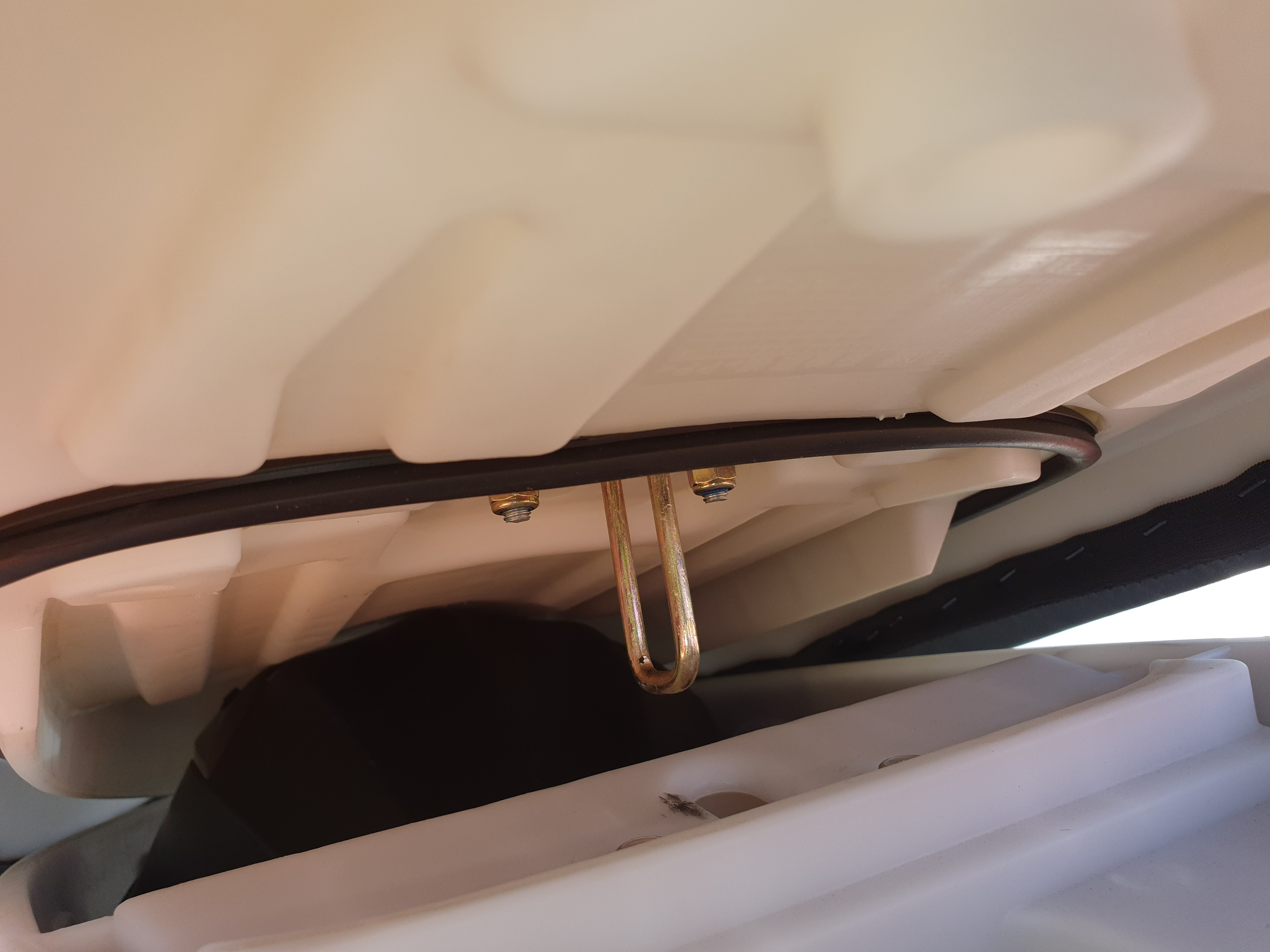 Der Kunststoff des Helmfachs sieht auch nicht sehr haltbar aus. Schwarzes Plastik hätte zumindest optisch einen besseren Eindruck gemacht.