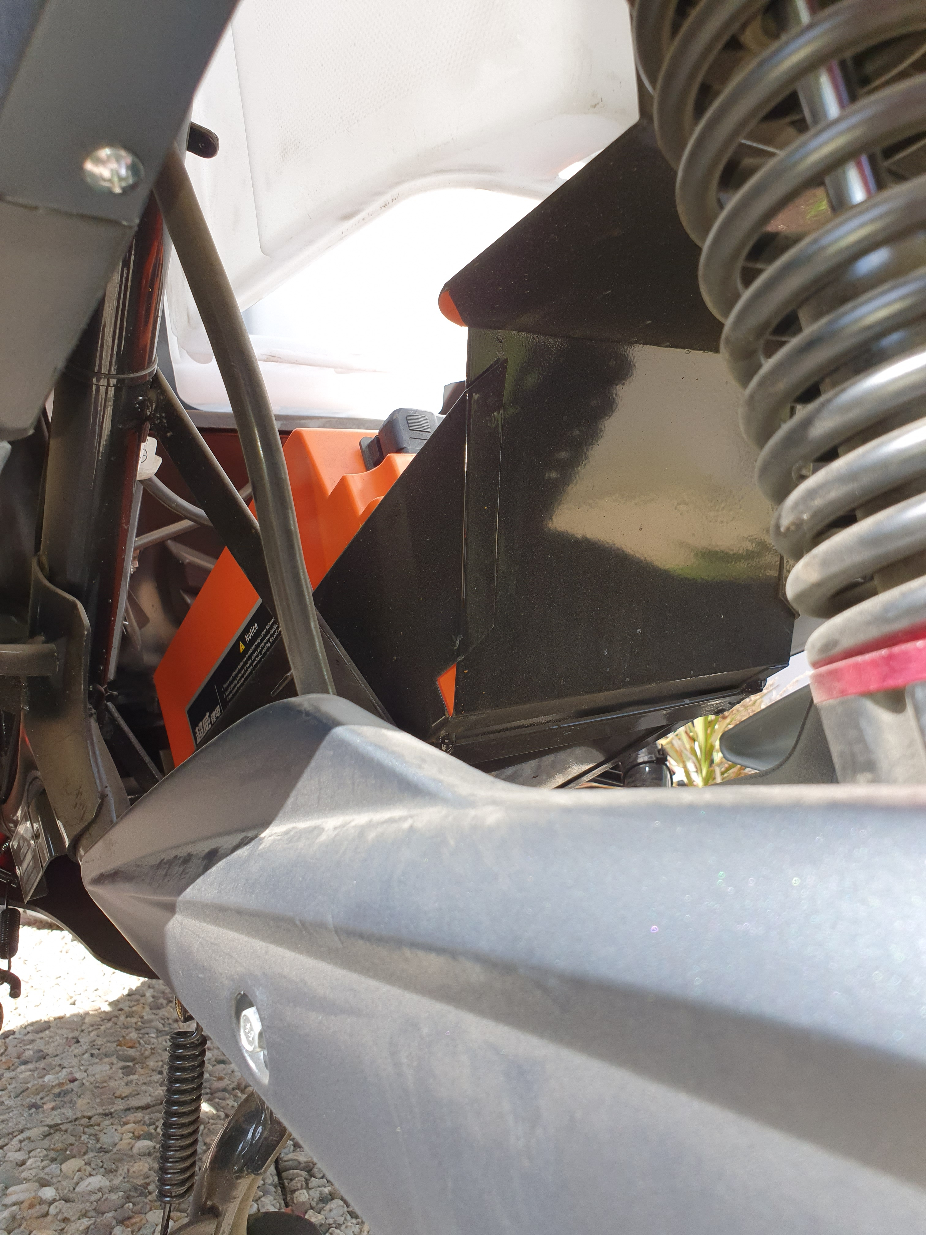 Es würde sich ja fast lohnen, für den Akku eine Art Verhüterli außenrum zu basteln, ob nun in Form eines Kunststoffsacks oder sogar aus starrem Kunststoff. Es sei denn natürlich, er braucht die Kühlung durch den Fahrtwind.