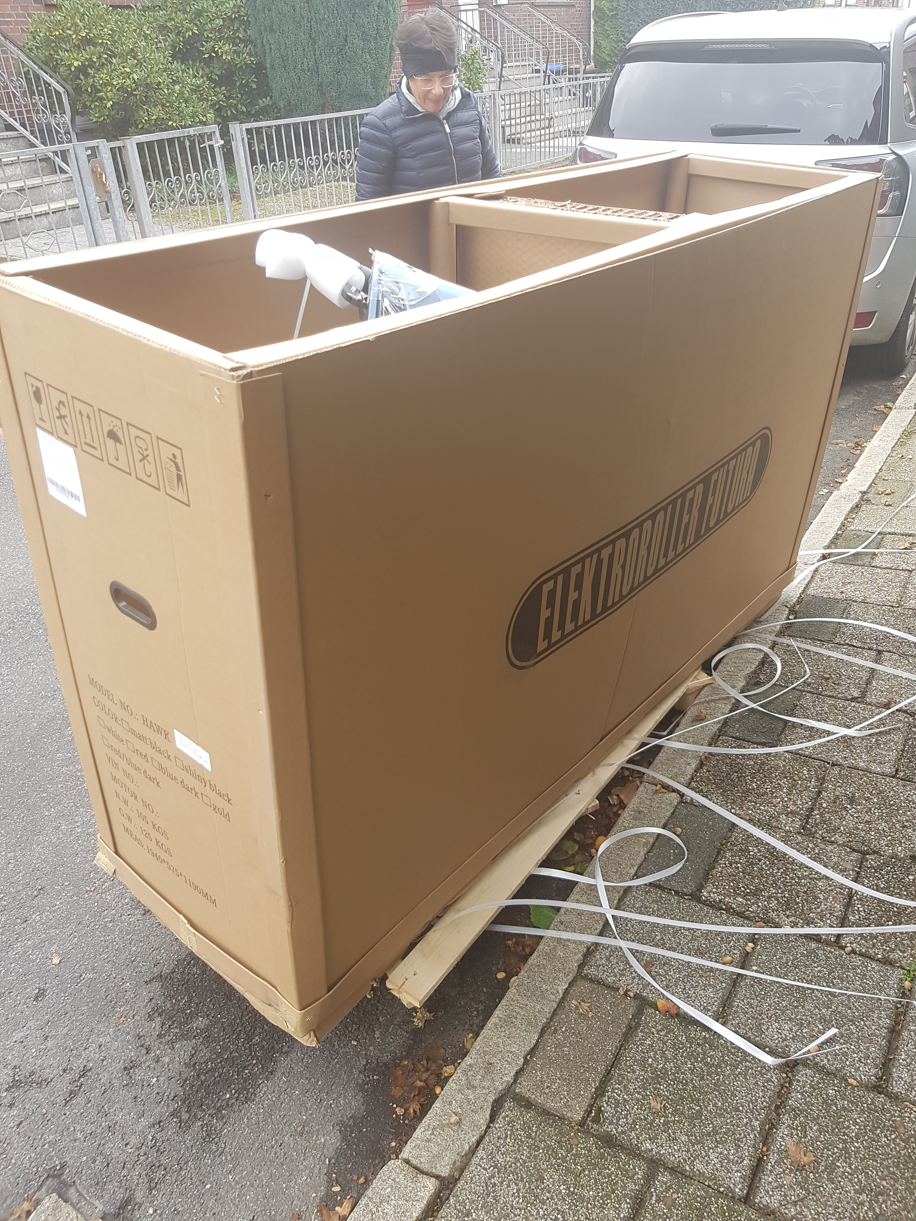 Auspacken und Folierung entfernen hat so 1,5 Stunden gedauert. Ging auch alleine