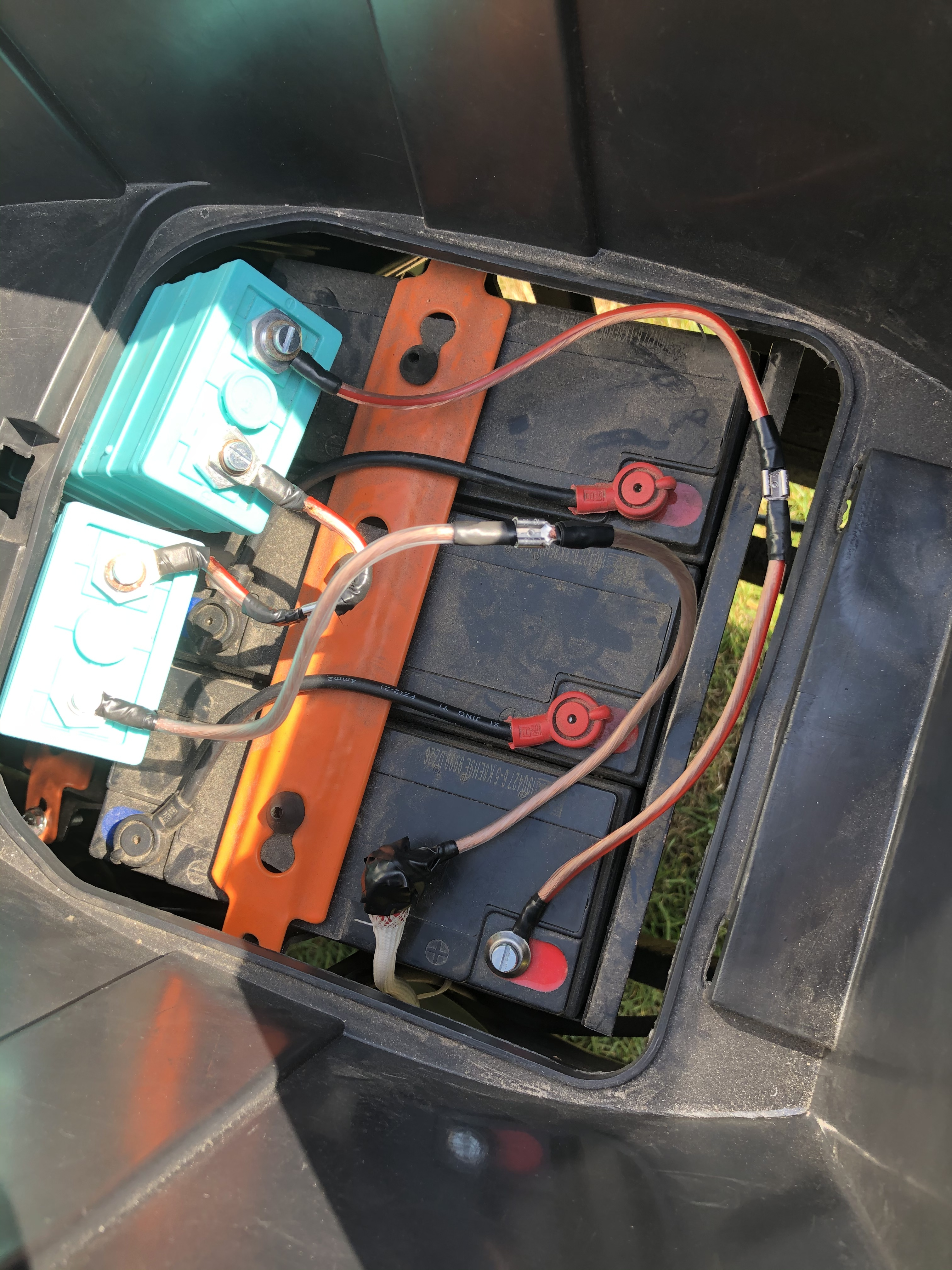 Hier das Foto. Die Kabel kann ich abziehen und wieder verbinden. Da das Kabel vom Controller wieder an den Blei Akku ran muss. Sonst lädt er nicht.