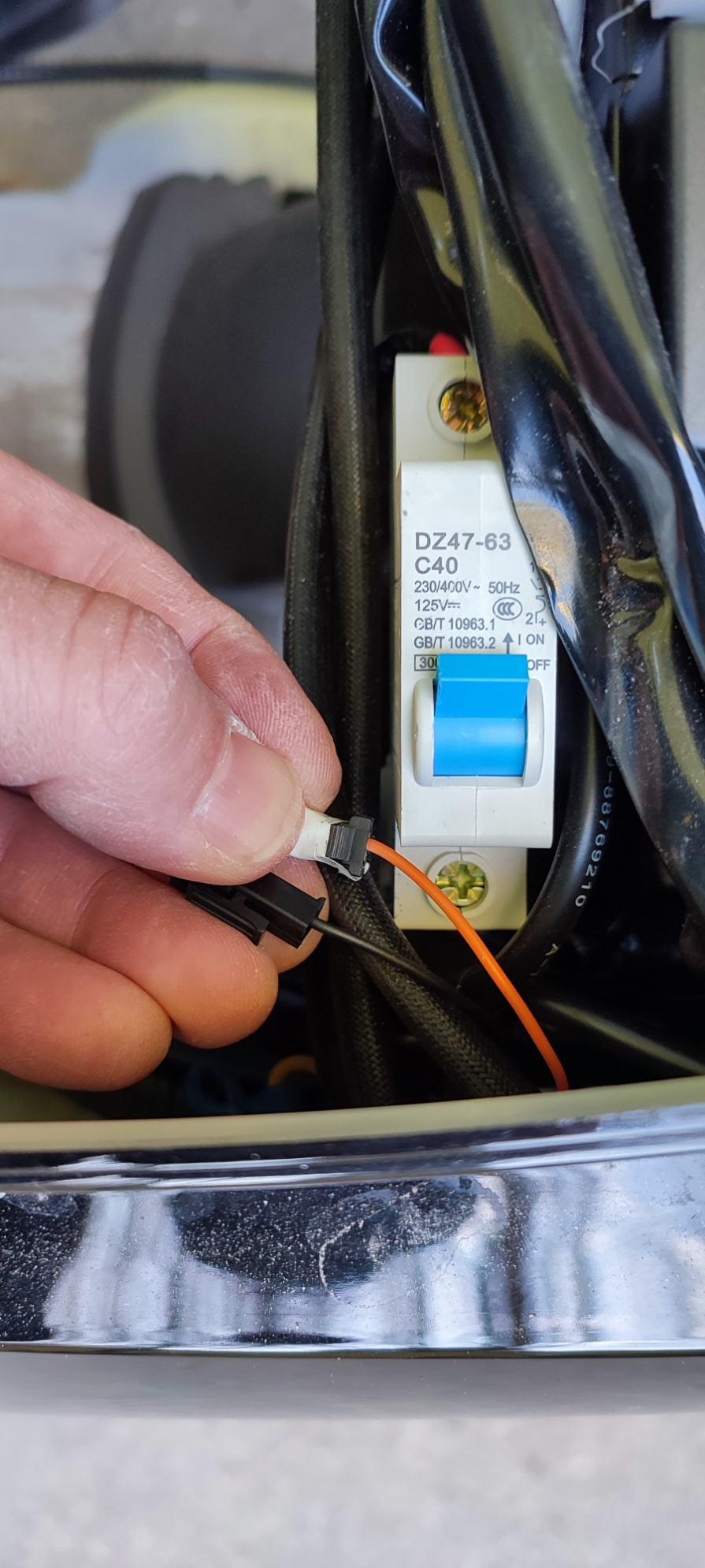Danach sucht ihr einen Stecker (eigentlich Brücke) mit einem orangen und schwarzen Kabel. Um den Tempomat zu deaktivieren, muss dieser abgesteckt werden. Nicht vergessen, die beiden Stecker mit Isoband zu abzuwickeln (einzeln und dann zusammen).