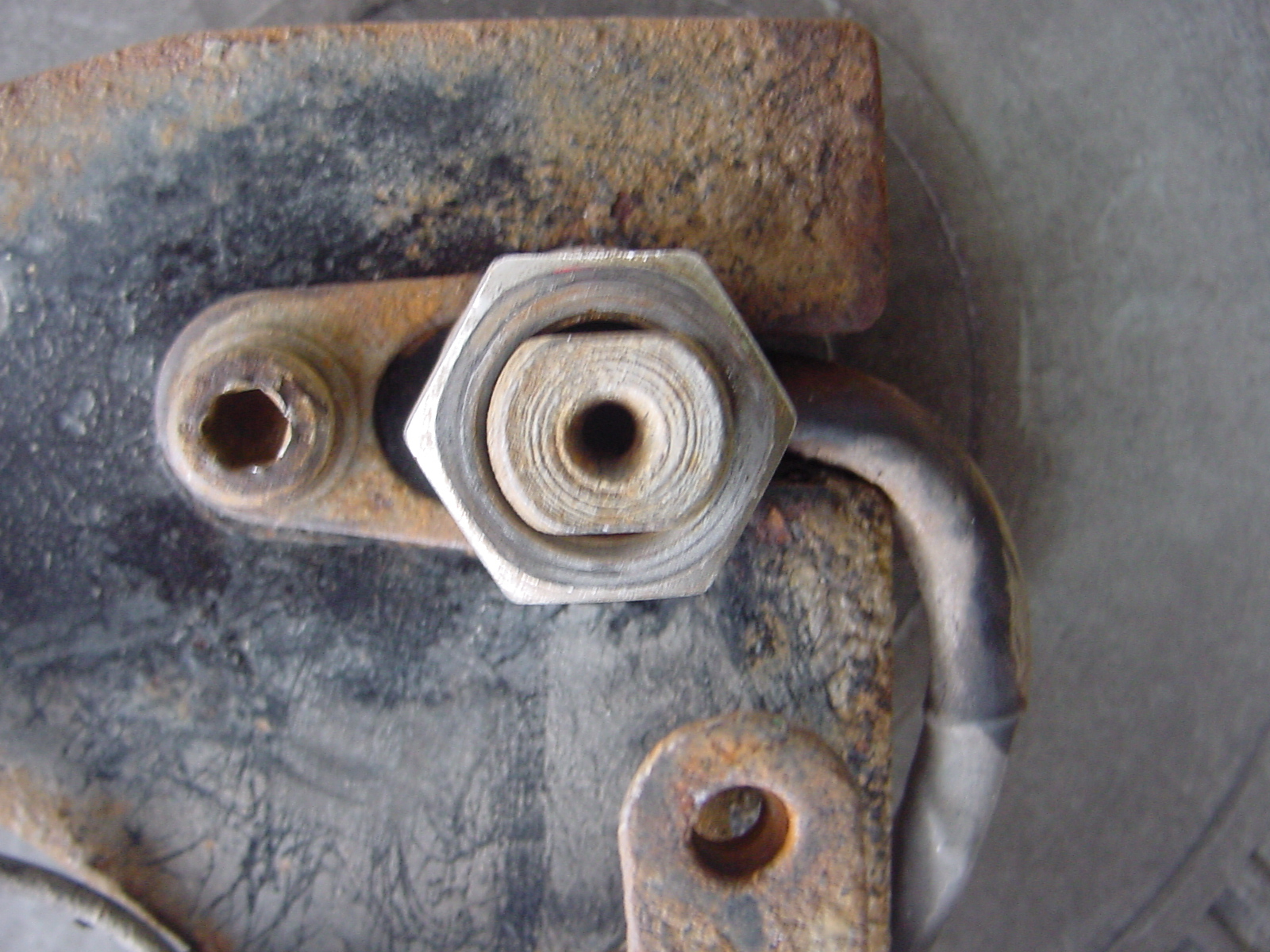 Dann sind die Hinterachsmuttern nicht stark genug angezogen! Wenn es da noch ein Drehmomentstütze gibt, die separat angeschraubt werden muss, kann man da ein Langloch feilen, so dass man vor dem Festschrauben der Hinterachse diese nach hinten drehen kann (Antrieb ist viel stärker als die Reku!), die Drehmomentstütze ebenfalls so gedreht werden und gesichert werden. Und dann zuerst die Radmutter links mit mindestens 65Nm anziehen, da das die Motorwelle zusätzlich nach hinten dreht. Hier die Bilder von meinem damals schon sehr mitgenommenen Fury. Zuerst die linke Seite, wo das fette Motorkabel rauskommt: Dann die rechte Seite, wo man recht deutlich das Verdrehen der Drehmomentstütze erkennen kann: