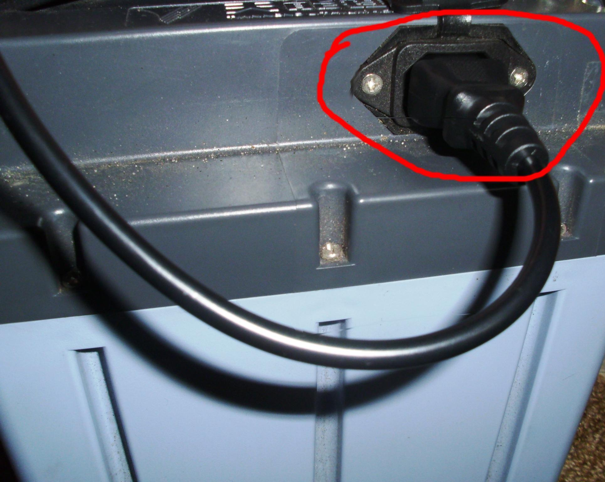 das ist ubrings kein normaler kalgerate stecker (c13/c14) den der ground pin ist hier horizontal nicht vertikal, ein pc netzteil kabel past hier also nicht. bin mir ehrlich gesagt nicht ganz sicher wie dieser stecker heist.