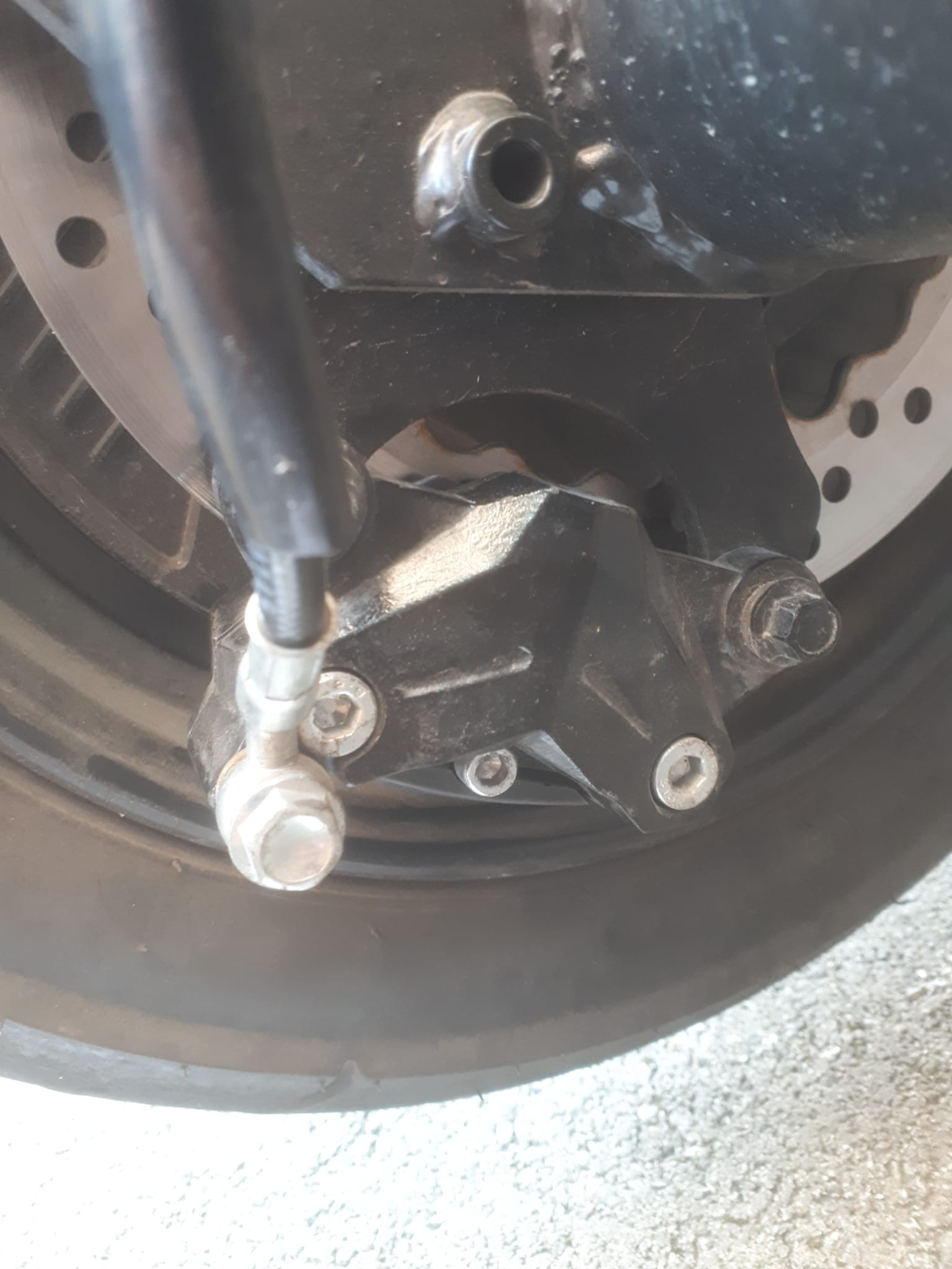 Wollte dort entlüften, aber: Am hinteren Bremssattel ist kein Entlüftungsnippel/Entlüftungsschraube?!