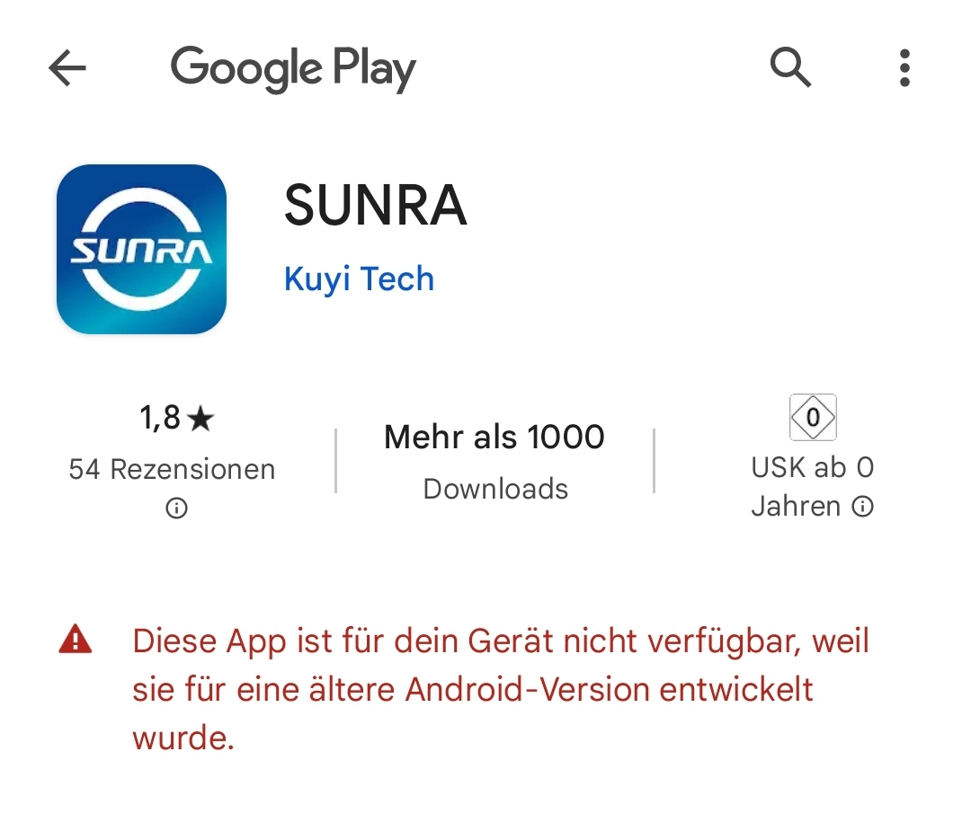 Ich habe das Samsung S22 Ultra. Anscheinend ist der SunraApp mein Handy zu neu 🙄