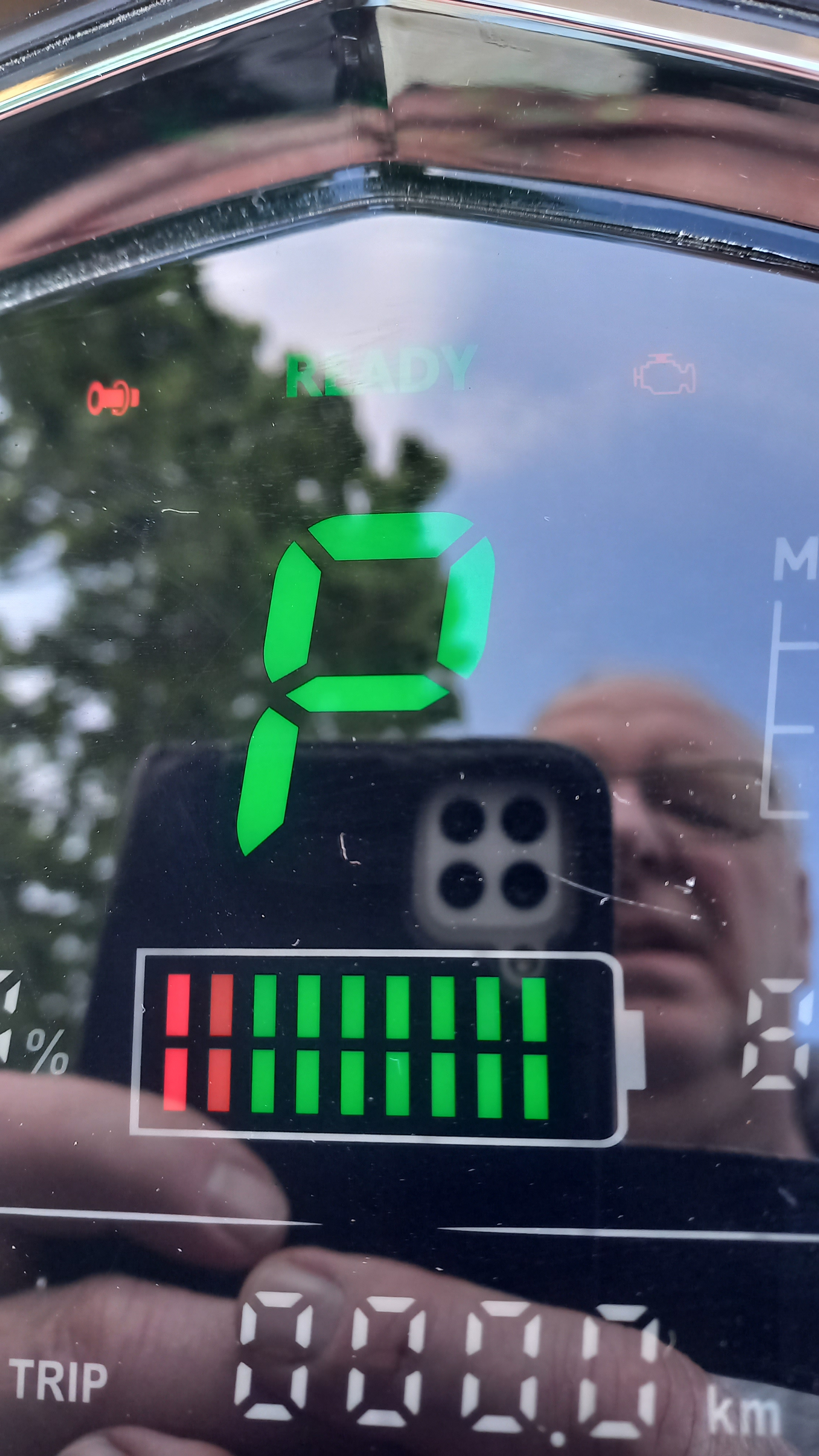 (Seltenes Nebenproblem, Zusammenhang, oder nicht?: Ab und zu fällt eine Akkuanzeige auf 0%, der Roller fährt normal wieter. Das Problem scheint mit einem Schlagloch zu kommen und mit dem nächsten zu gehen)