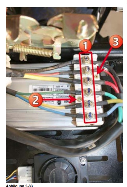 Die Drei Ösen auf der einen seite des Controllers sind jedenfalls die drei Motorphasen.