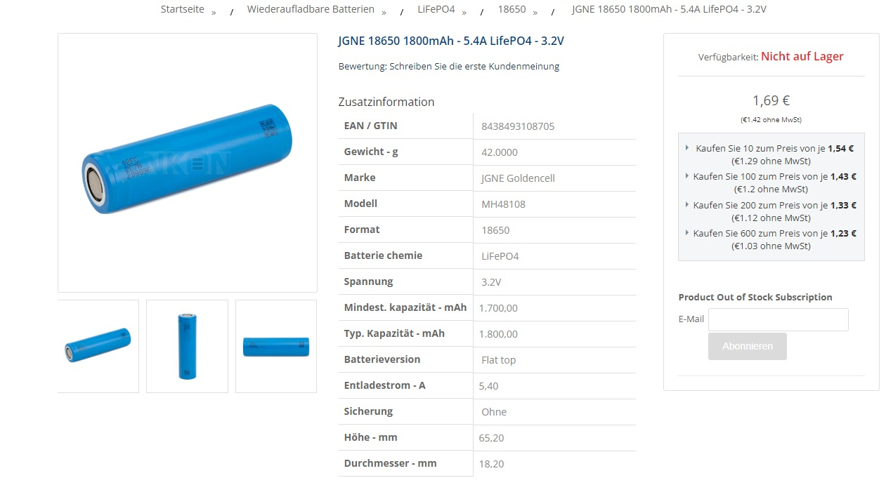 Leider ist der Kauf und Zusammenbau mit in Deutschland gekauften Zellen total unwirtschaftlich. Und beim Chinesen spart man kein Geld letztendlich durch Eigenbau. Es hätte lediglich einen Lehreffekt.