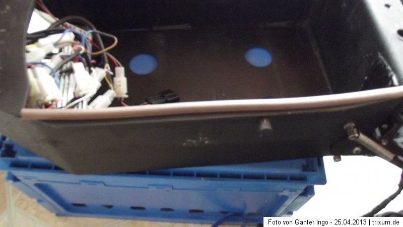 Dort kommen kleine Steinchen und Nässe rein, und zwar nicht zu knapp. Ich war erstaunt, wieviel da in kurzer Zeit passiert. Danke dafür, dass meine zukünftige Werkstatt mich mal zuschauen und in die Akkuwanne reinschauen liess.