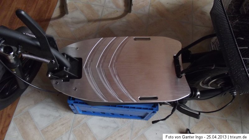 Wenn man mit den Füssen auf dem Trittbrett "steht", dann klappert sowieso nichts. Bei anderen Escootern gibts dafür rechts und links bewegliche Haken, mit denen man das Trittbrett an die Akkuwanne festklemmt.