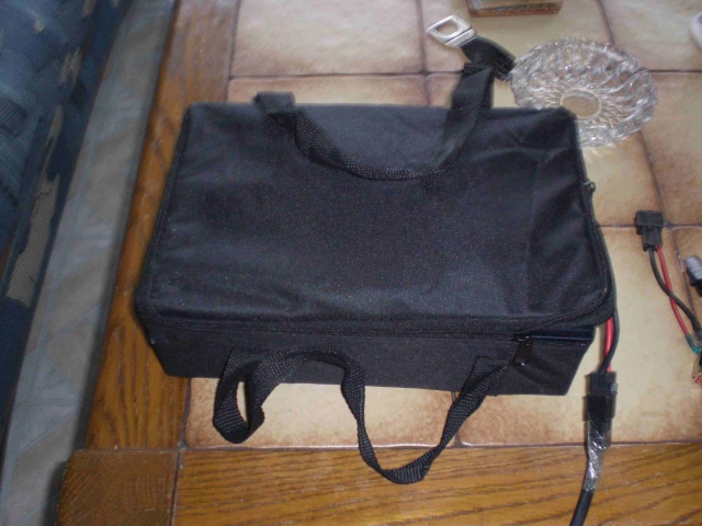 So, fast alles fertig. In die Akkutasche, die ich über die Fa. Eneway bezogen habe (ohne Akkus und Verkabelung), habe ich vier alte Akkus aus meinem ehemaligen Rolektro BT-250 (baugleich Forca Cityfloh) eingesetzt. Es handelt sich dabei um zwei Akkus 12 Volt mit 15 Ah und zwei ältere Akkus mit 12 Volt und 12 Ah. Das ist nicht gesund, ich weiß. Harry wird jetzt sagen, dass die 15er die 12er kaputt machen werden. Das macht aber nichts, denn erstens ist es nur ein Reservepack für mal geplante, längere Fahrten ohne Nachlademöglichkeit und zweitens würde ich die 12er ohnehin in Zukunft auch durch 15er ersetzen, wenn sich das Reservepack als sinnvoll erweist.