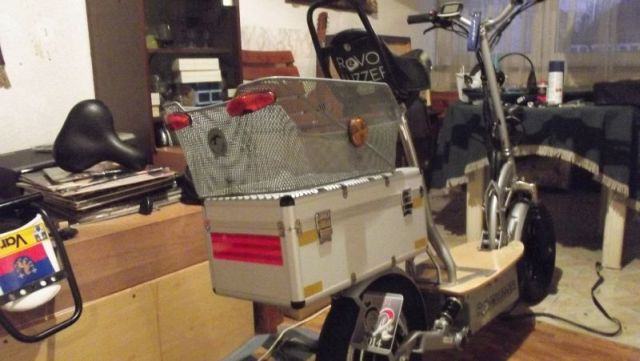 Nö, Topcase ist nichts für mich. Hatte ich schon mal ausprobiert. In diesen Dingern mit den Rundungen wackelt das Akkupack nur so herum und ich habe keine Lust, das alles auszukleiden. In diesem Alukoffer liegt das empfindliche Lithiumakkupack absolut perfekt und da der Koffer innen auch gut schaumstoffverkleidet ist, auch stoßsicher.