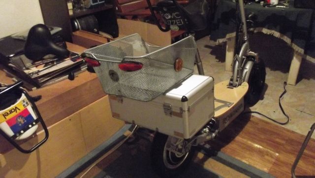 Bei Quermonatge des Alukoffers müsste ich die bereits aufgeklebten Reflektorenstreifen umsetzen. Beide Lösungen sind machbar. Muss natürlich nur eventuell vorhandene Sachen im Körbchen vorher herausnehmen, wenn ich den Deckel des Koffers aufklappen möchte.