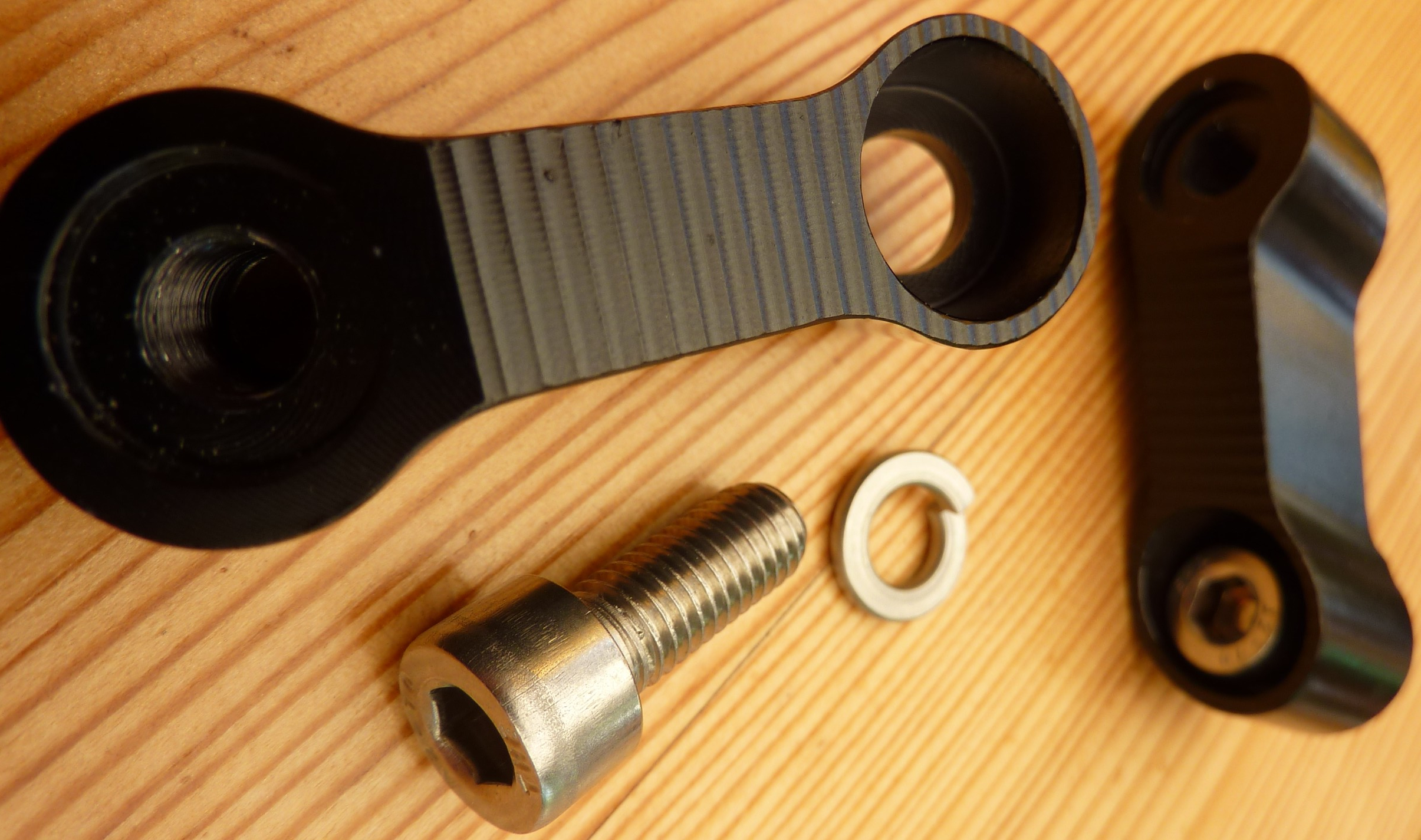 Preis 8,99 € + 6,99 € Versandkosten. Geliefert aus England, eingetroffen 7 Tage nach Bestellung. Vergleichbare Teile gibts natürlich auch woanders. Die mitgelieferten M8-Inbusschrauben habe ich durch Edelstahlversionen ersetzt. Ein wenig Fett auf die Gewinde, einen VA-Sprengring unter die Inbusschraube = fest. Und damit meine ich fest! Auch wenn ich versehentlich dagegen komme, da rührt sich nichts mehr. Unter die Kontermutter des Spiegels habe ich eine VA-Scheibe gesetzt.