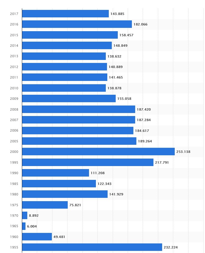 Hier noch die Gesamtzulassungszahlen der Neuzulassungen nach Jahren geordnet: