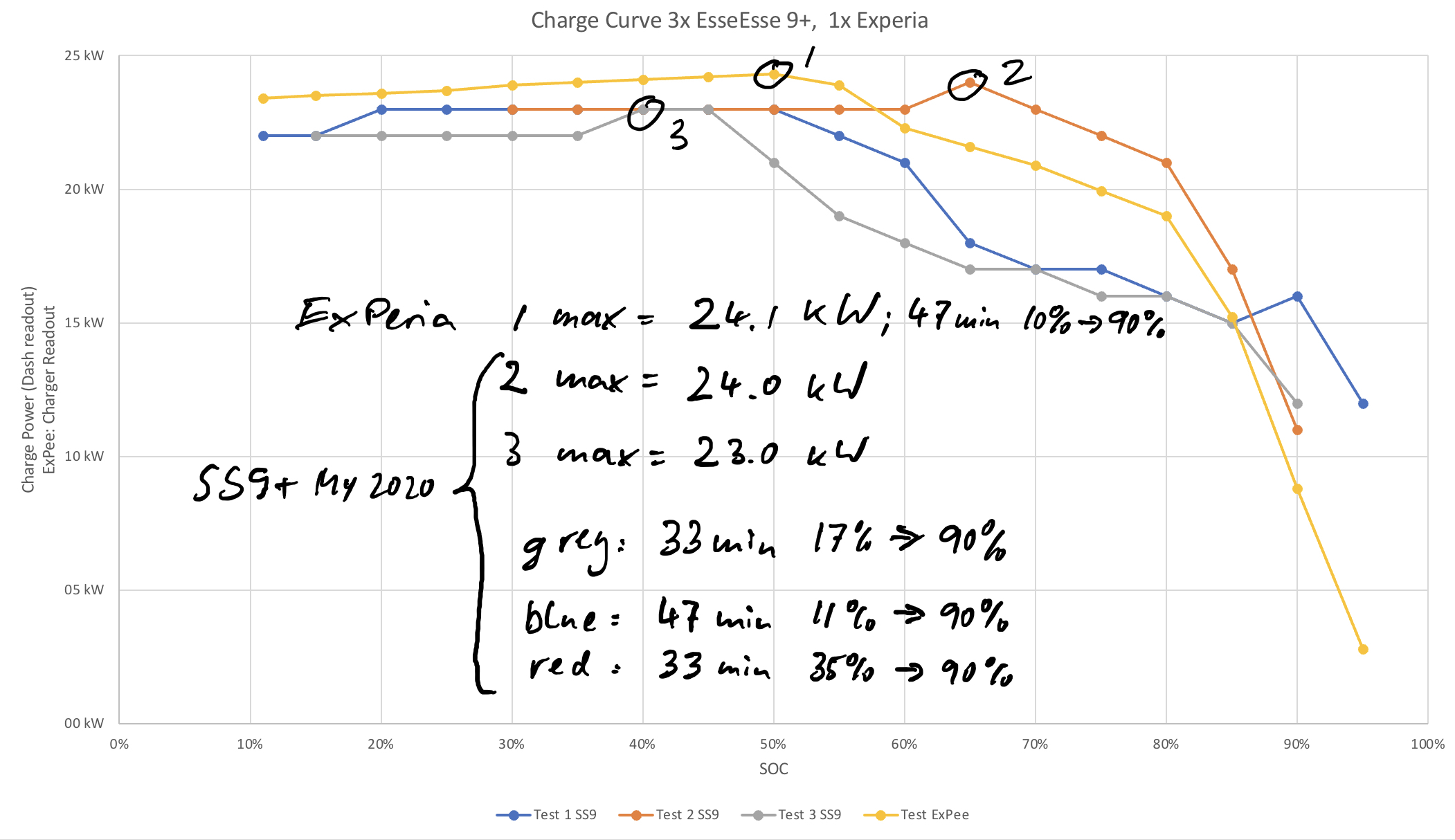 ich habe seinerzeit mit meiner EsseEsse 9+ mehrfach Ladekurven aufgezeichnet - leider war ich schlau genug, um mir NICHT die Randbedingungen zu notieren. Also ob es Wiederholungsladungen waren, ob vorher länger gefahren wurde und ob schnell oder gemütlich und zuletzt die Umgebungstemperaturen.