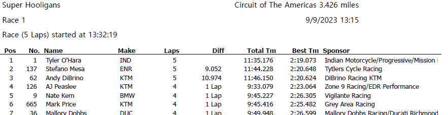 Am Samstag, den 09.09.2023 fährt Stefano Mesa auf einer Energica Eva Ribelle RS auf den 2. Platz beim ersten Rennen der Super Hooligans Klasse des MotoAmerica Superbikes at Texas Events des Circuit of The Americas (CoTA).
