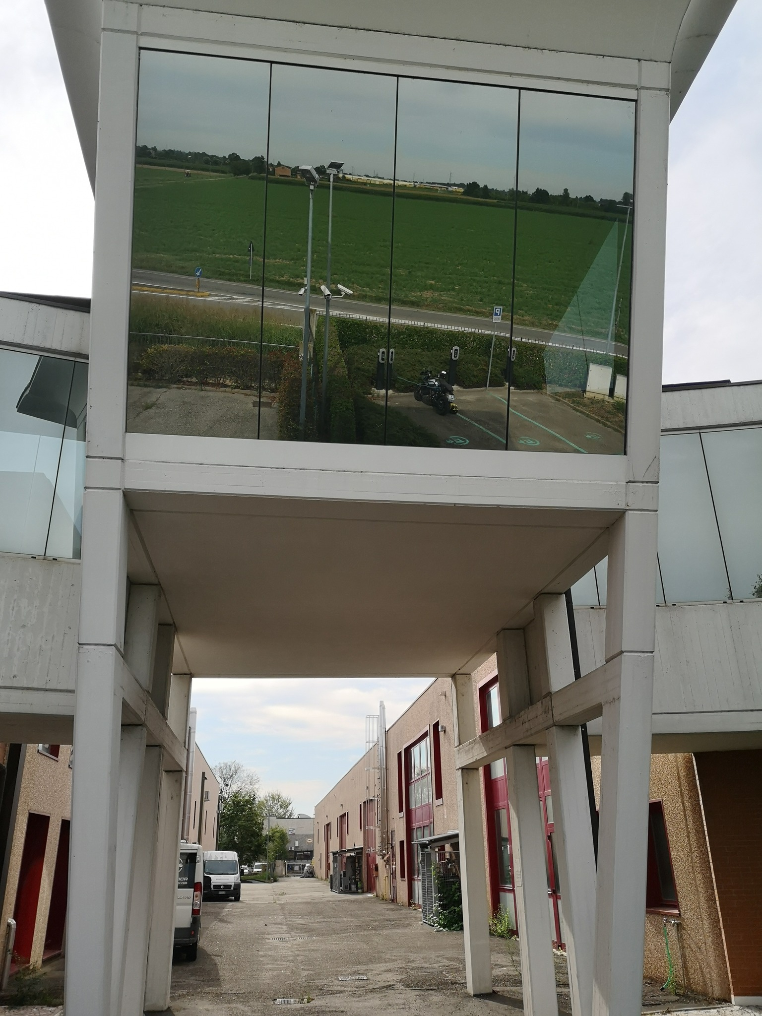 Das Tor war offen, also ging ich direkt zur Ladestation und schloss mein Motorrad an. Laden for free :D . Es waren jetzt keine fleißigen Mitarbeiter zu sichten. Also erst mal einen kleinen Rundgang durch das Gelände. Nach 30 Minuten kam dann Massimo (Mitarbeiter, Hausmeister.. ich weiss es nicht). War erst mal wütend darüber, was ich bei Energica zu suchen hätte und wie ich reingekommen bin.