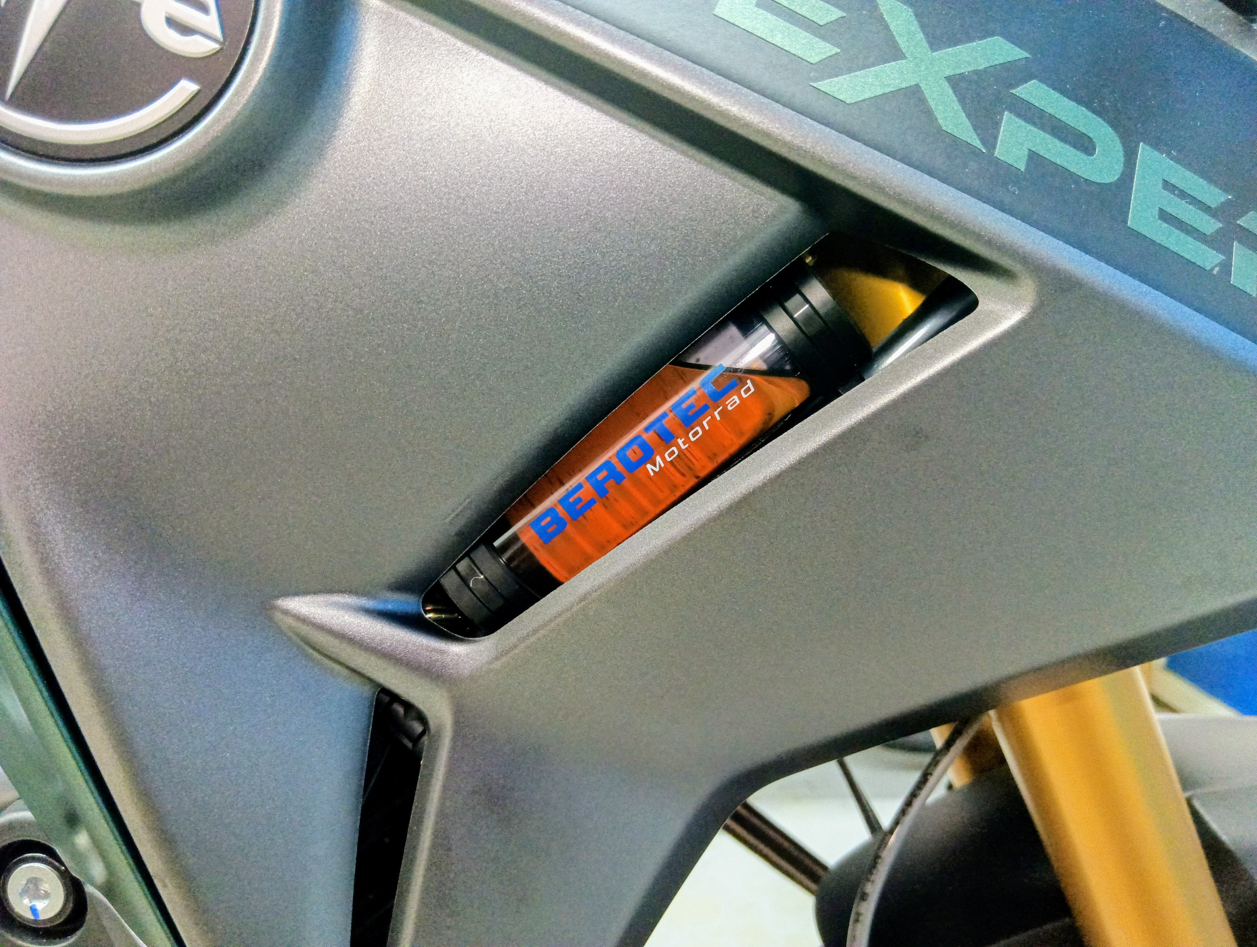 SO, Lenkkopflager ist erledigt. Bei der Gelegenheit habe ich noch einen elektischen Kettenöler von Berotec verbaut, Schaltspannung habe ich mir am Rücklicht geholt.