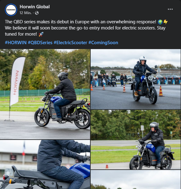 Bei Facebook wurde eine Horwin QBD gezeigt. Sieht aus wie ein Nachfolger der CR 6. Ich hoffe mal auf 11 kW Leistung und ABS.