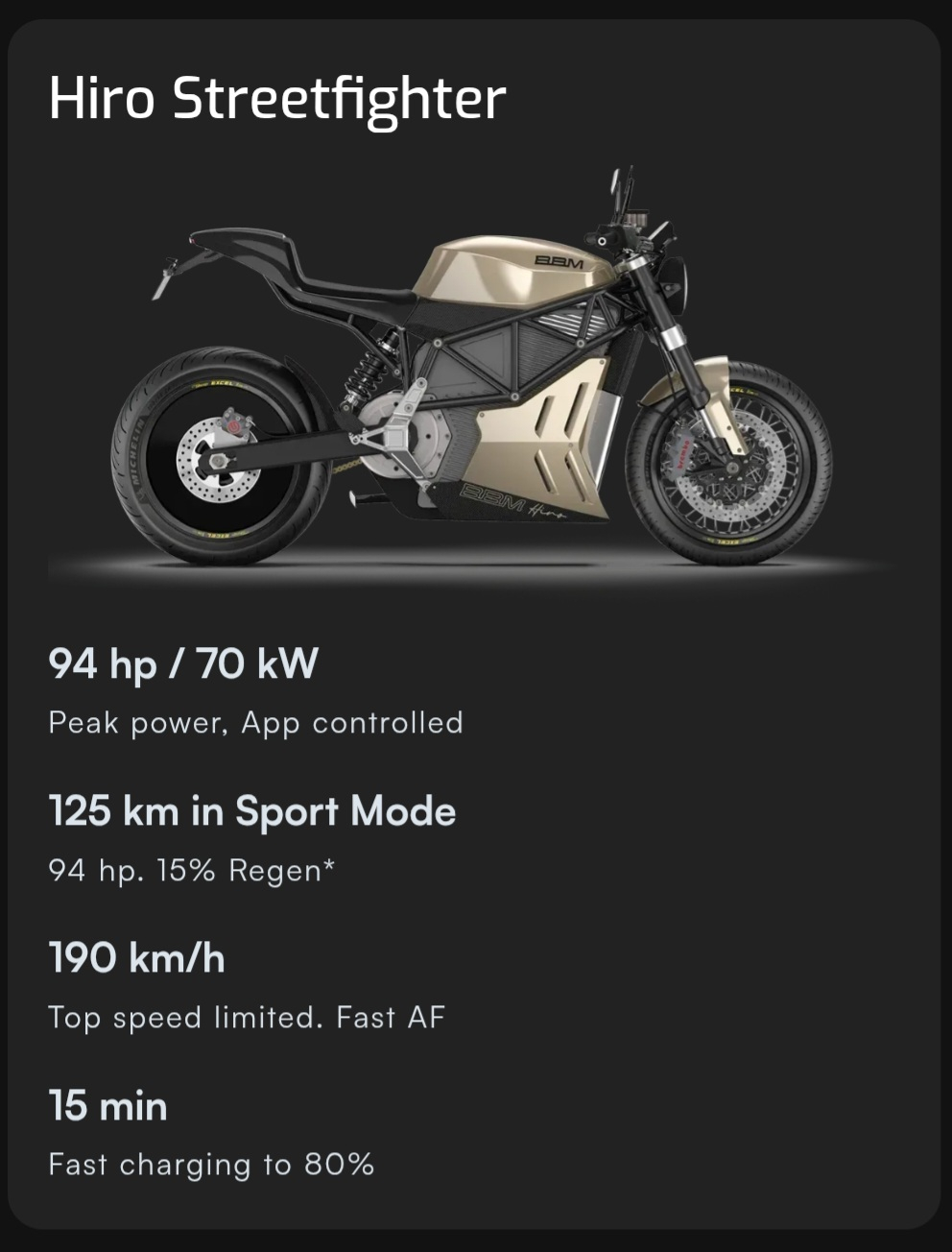 - Roller: Zero S 11kW ZF10.5/erider Thunder (R.I.P)
